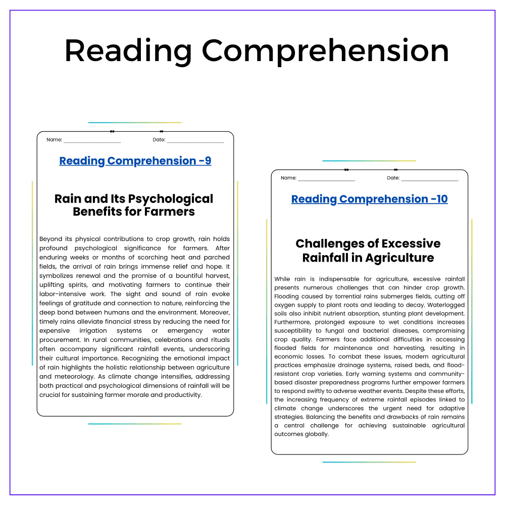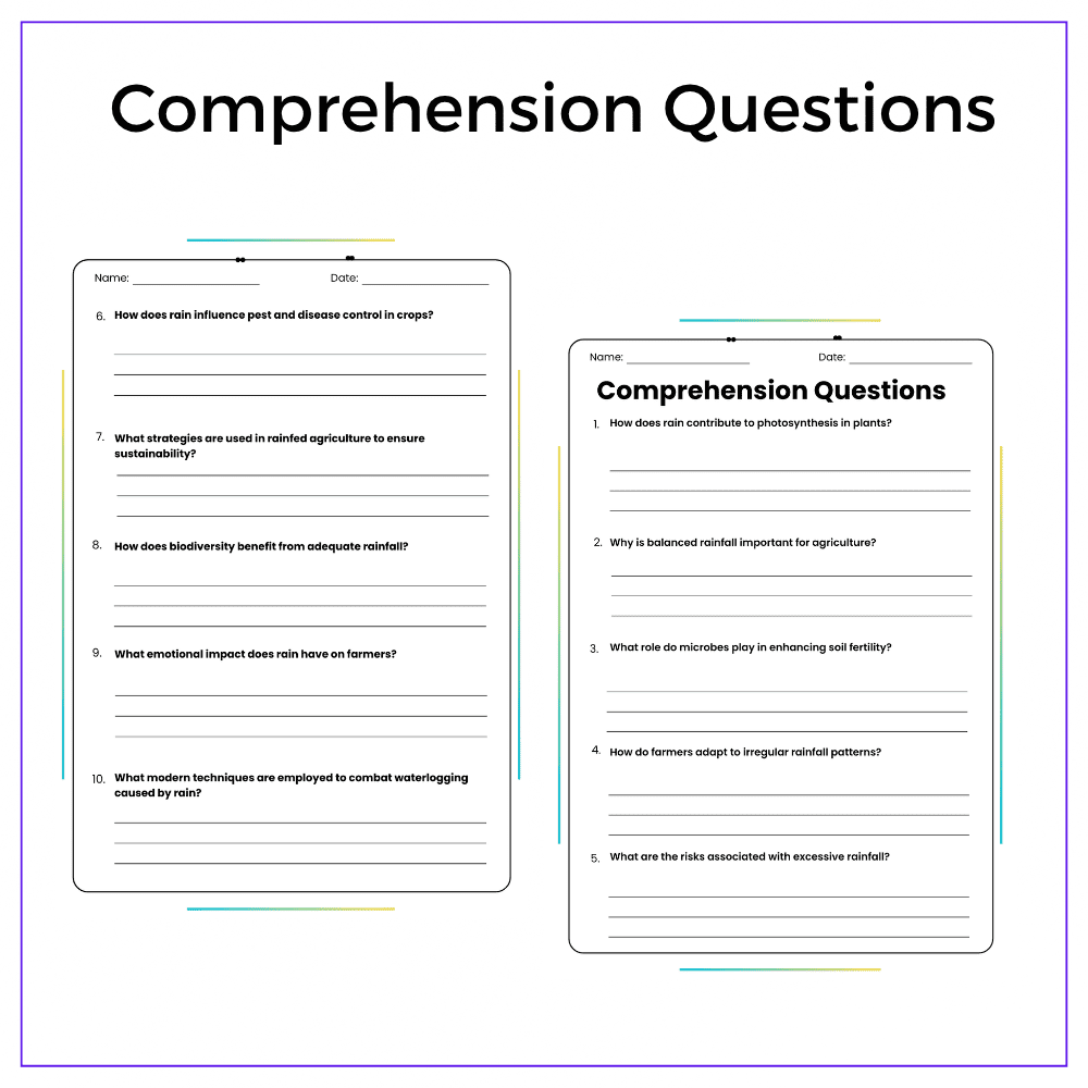 - Comprehension passages – Explain rain’s role in crop growth and soil health