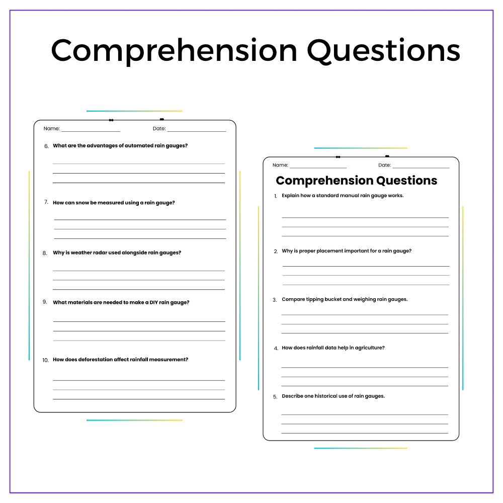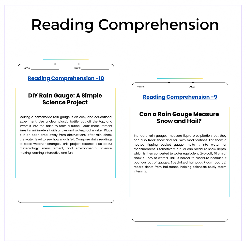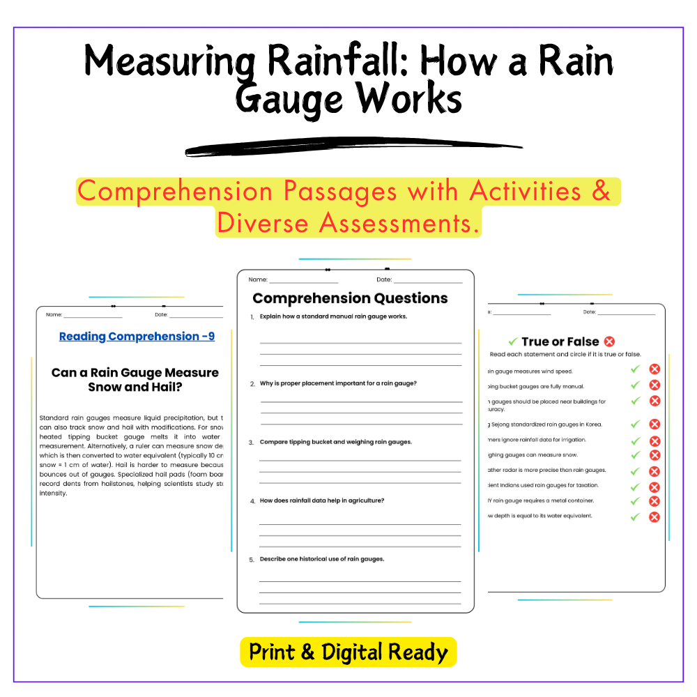 • Comprehension passages – Easy-to-follow explanations of rain gauges and measurement methods