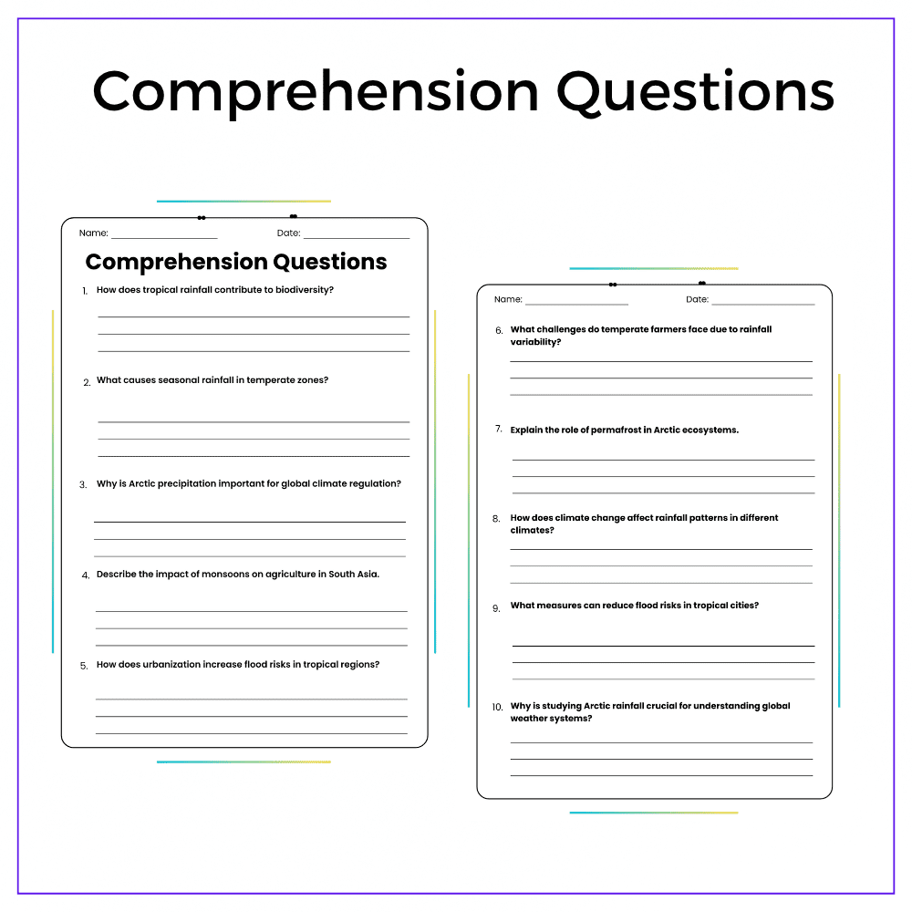 • Comprehension passages – Explore climate types and precipitation patterns