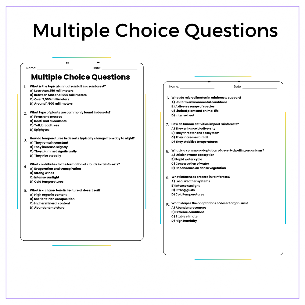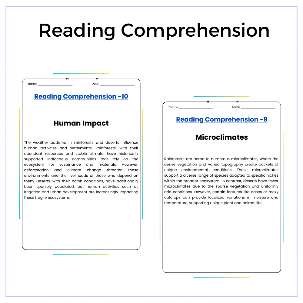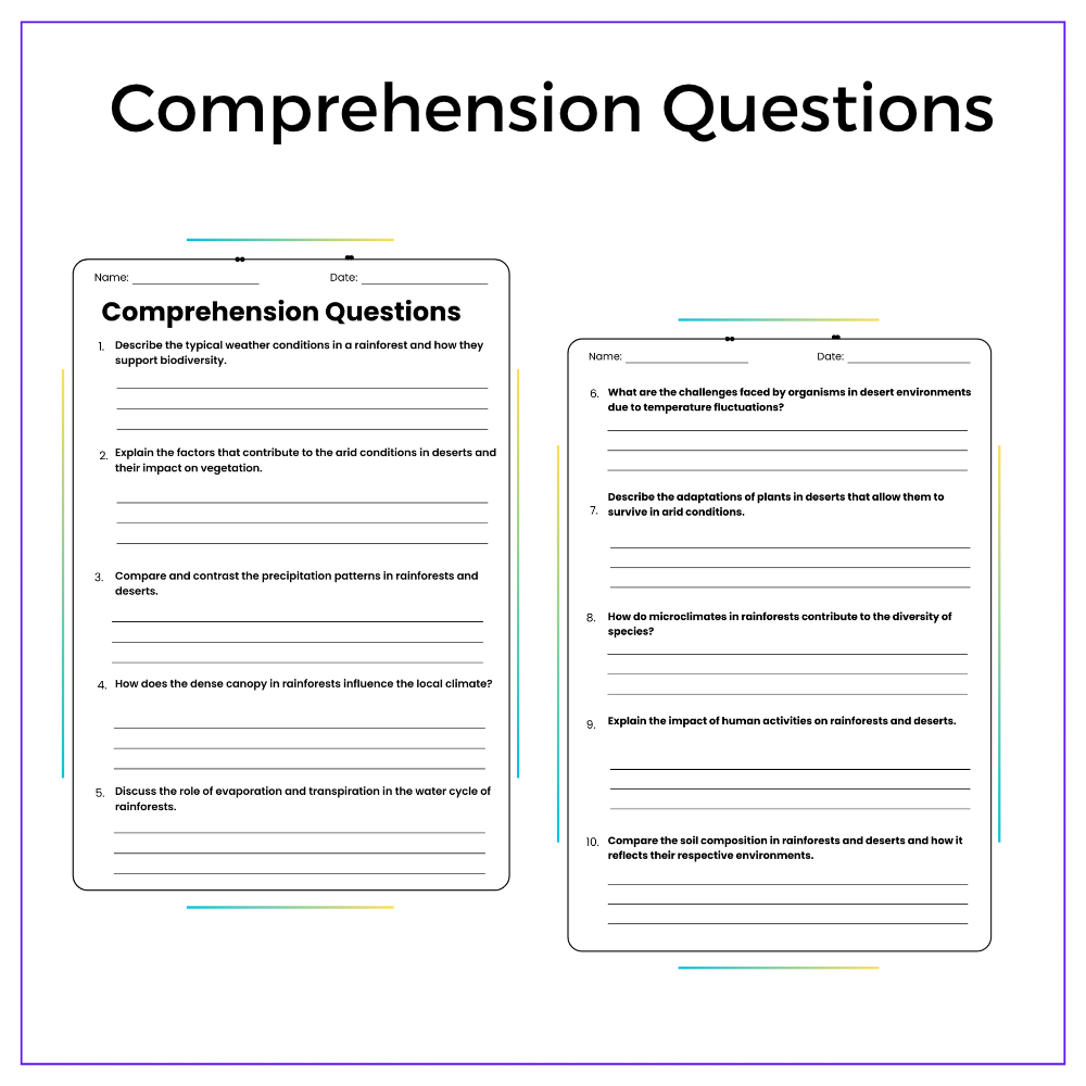 • Comprehension passages – Clear comparisons of rainforest and desert climates
