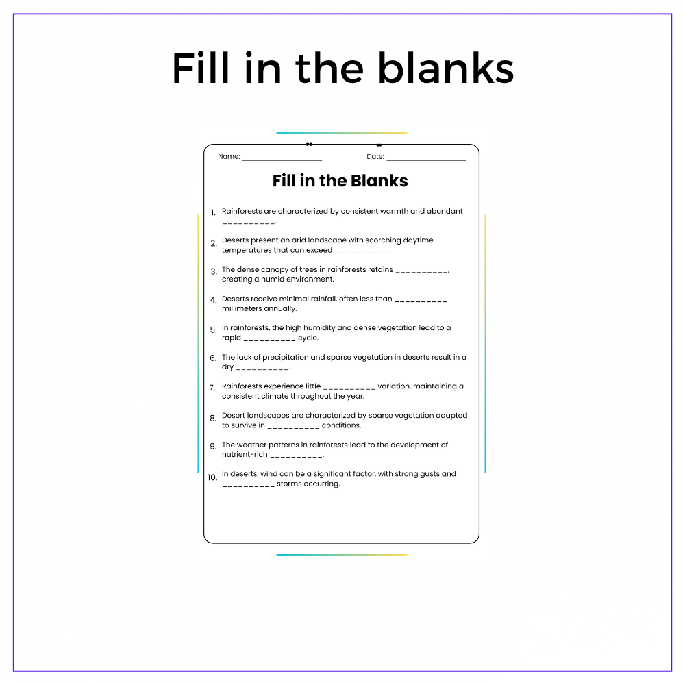 Compare rainforest & desert climates with our worksheet for grades 4-8! Learn weather science in this engaging lesson!