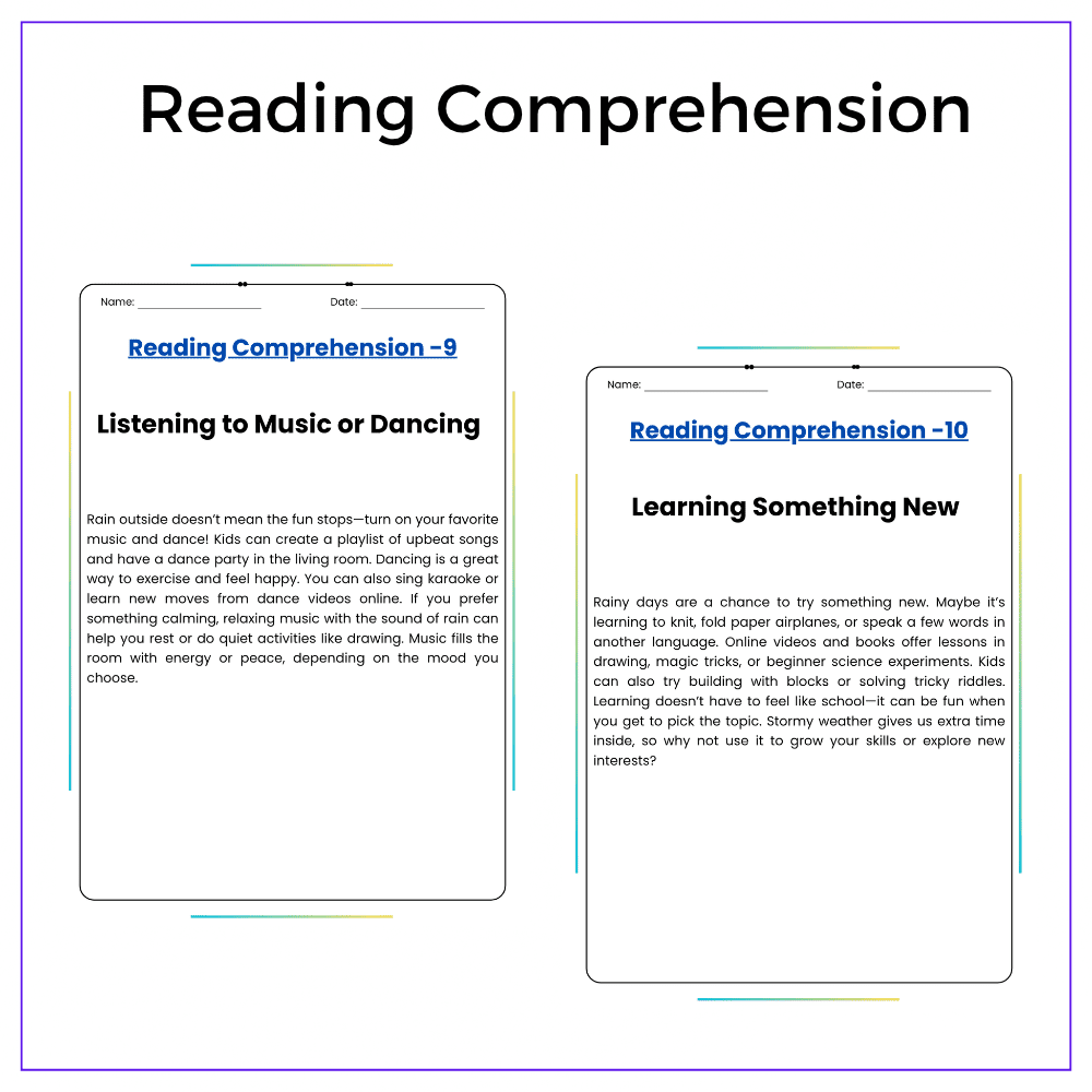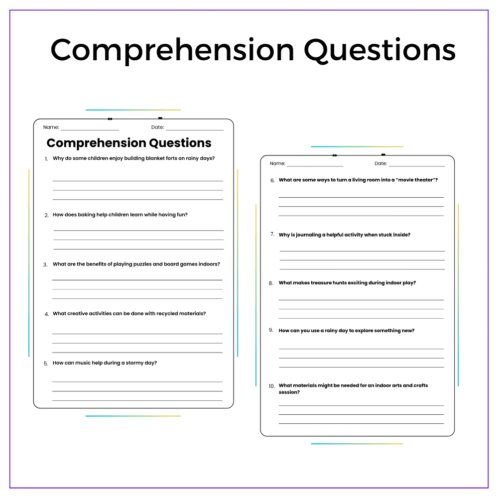 - Comprehension passages – Describe safe and fun indoor activities