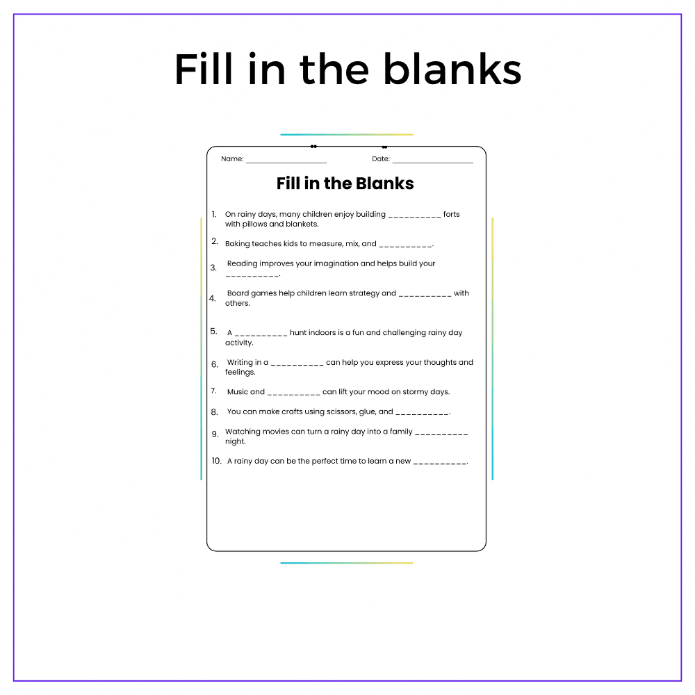- Fill-in-the-blanks – Reinforce vocabulary and concepts