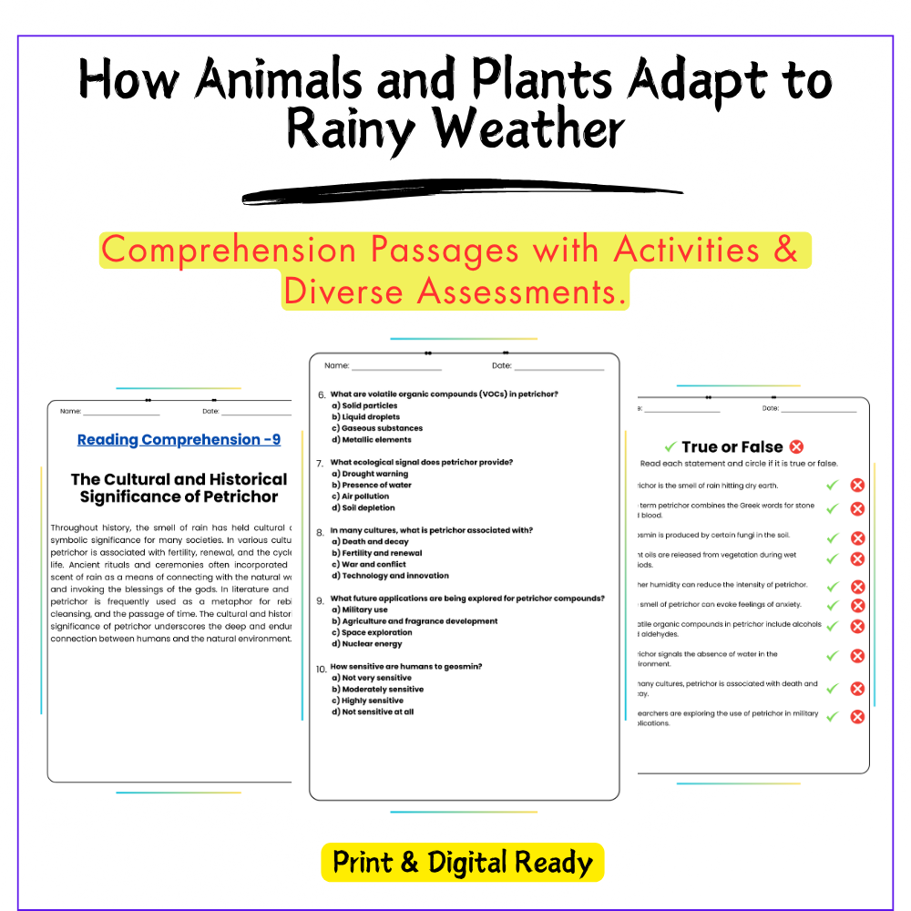 - Comprehension passages – Learn how organisms adjust to rainy environments