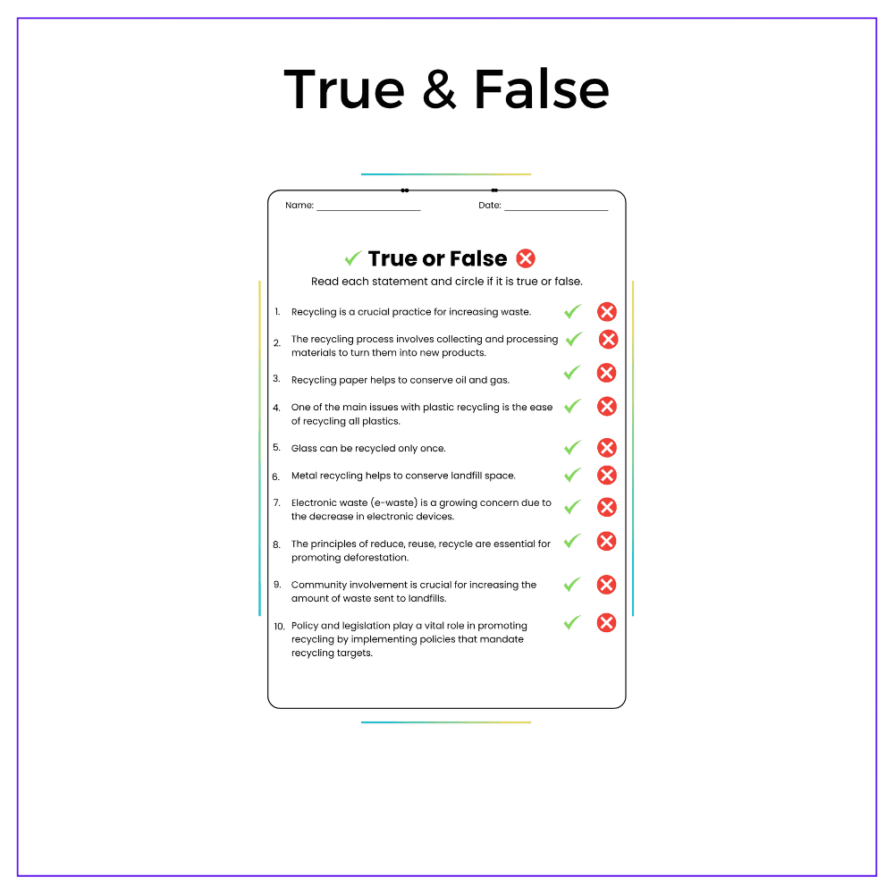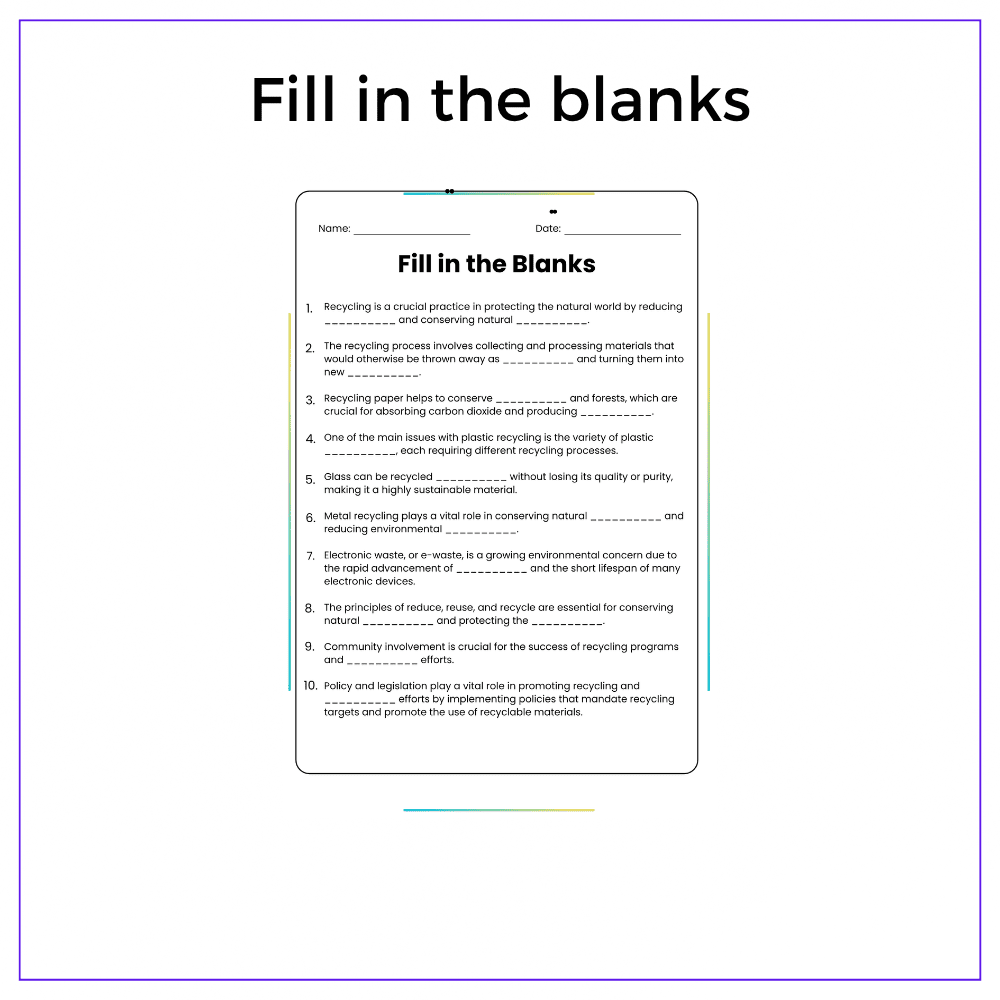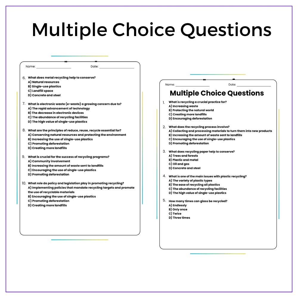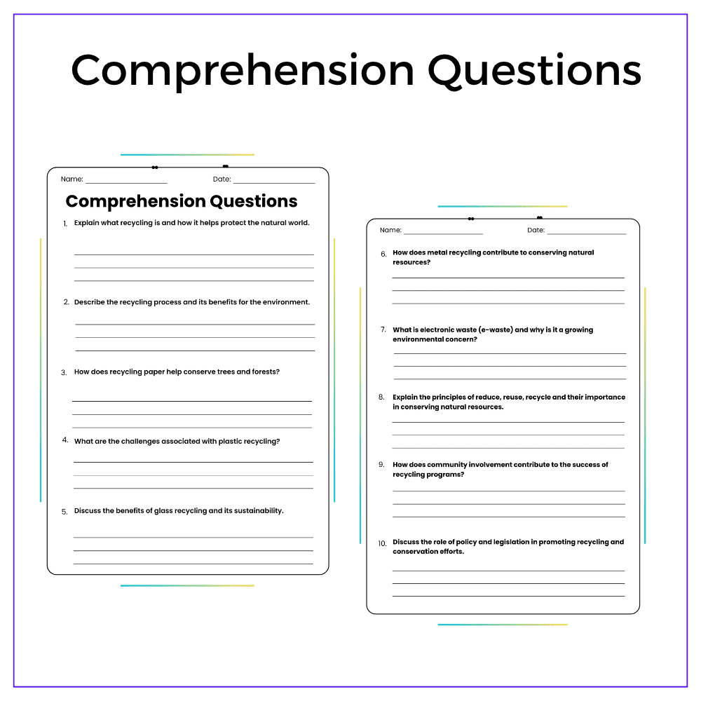 • Comprehension passages – Explain recycling processes and conservation importance