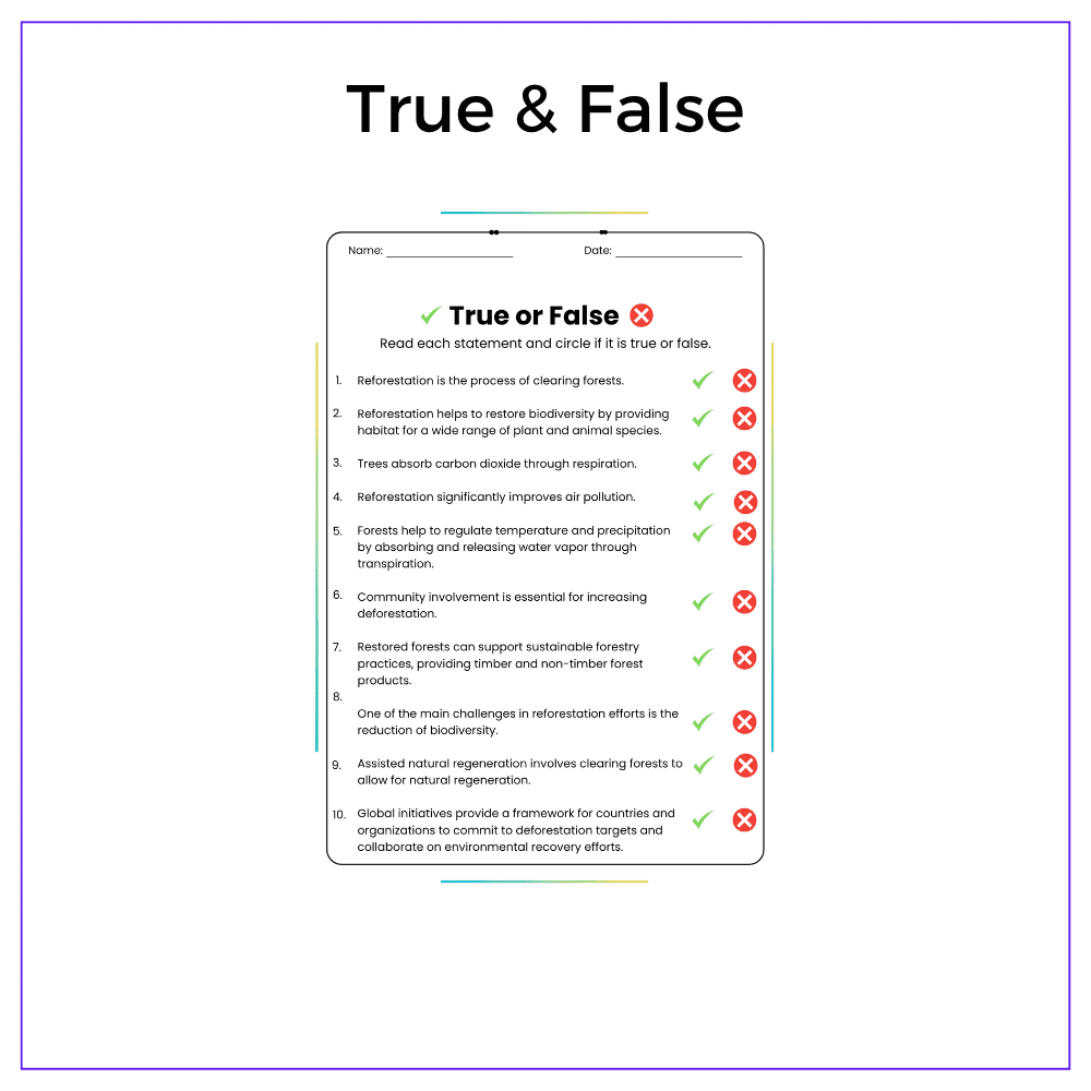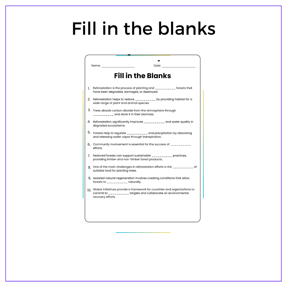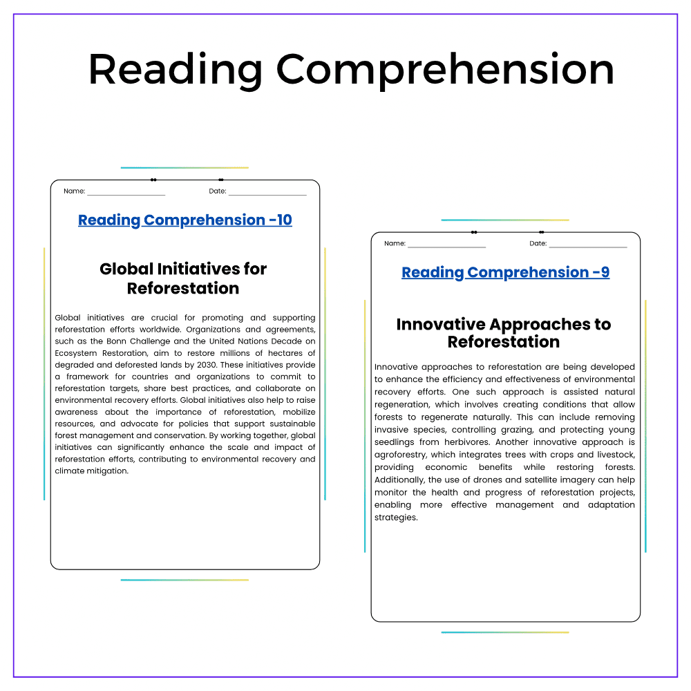 This versatile worksheet is perfect for individual assignments, group discussions, homeschooling, or extra practice, offering clear examples and activities to make tree-planting efforts relatable and inspiring. With comprehension passages, fill-in-the-blanks, MCQs, true/false questions, and critical-thinking tasks, students will gain a deep understanding of environmental renewal.