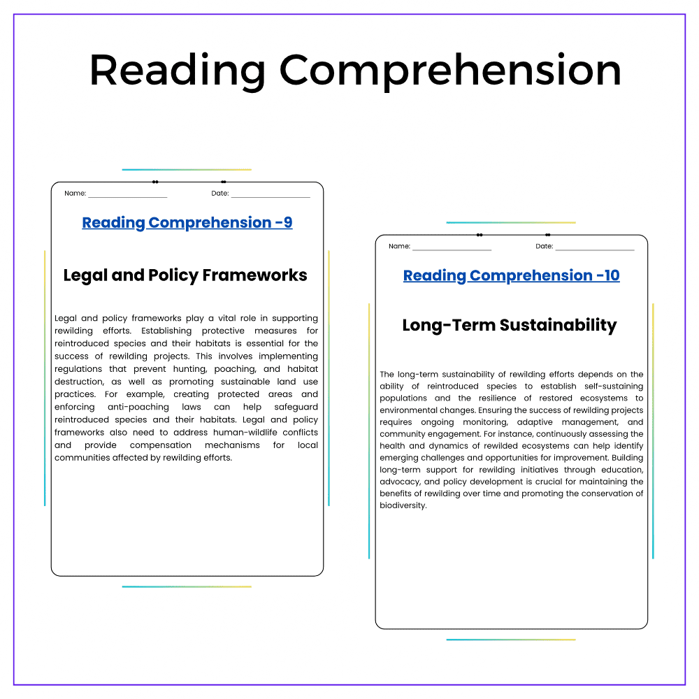 • Comprehension passages – Define and illustrate rewilding techniques