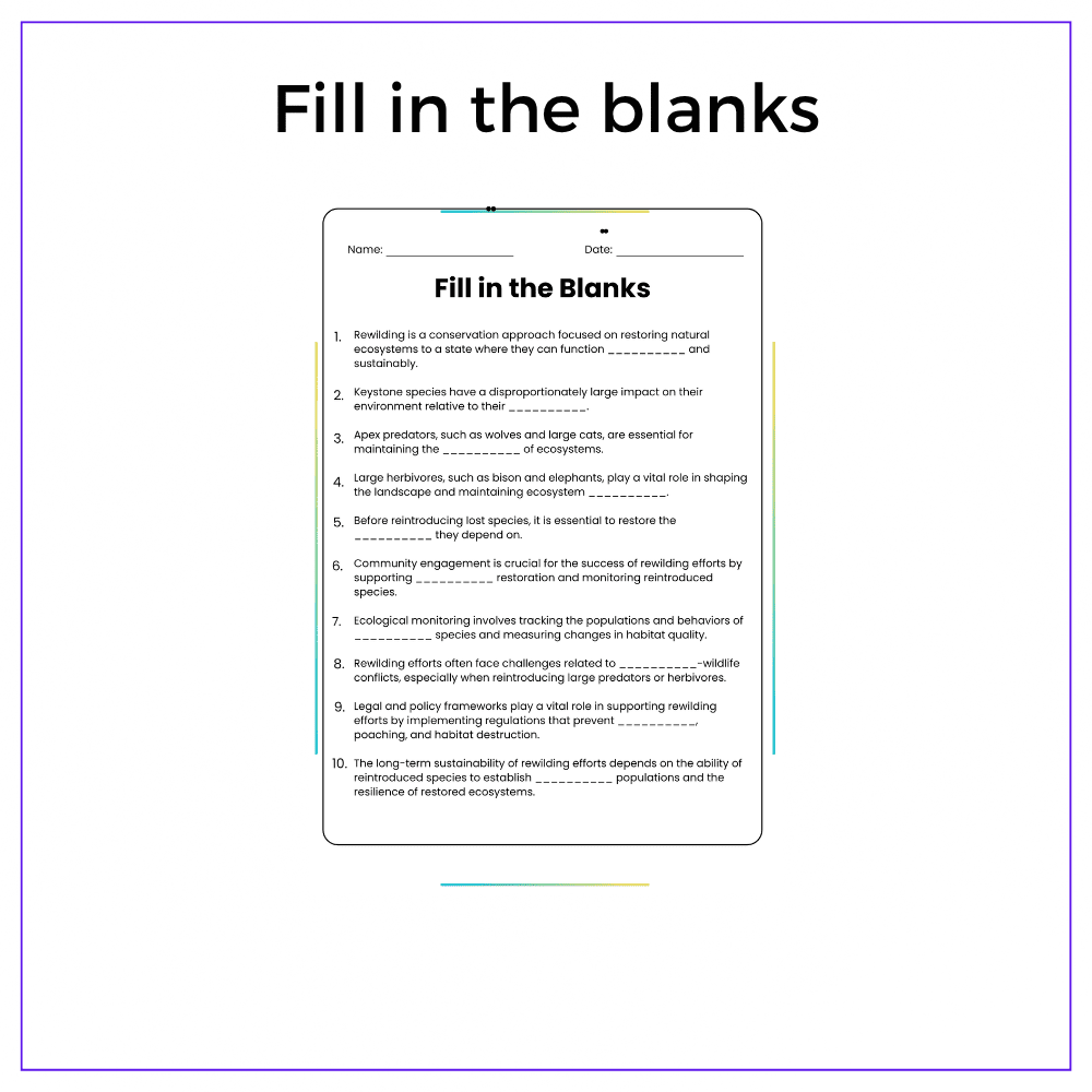 Discover how rewilding restores species with our worksheet for grades 4-8! Learn conservation in this engaging lesson!