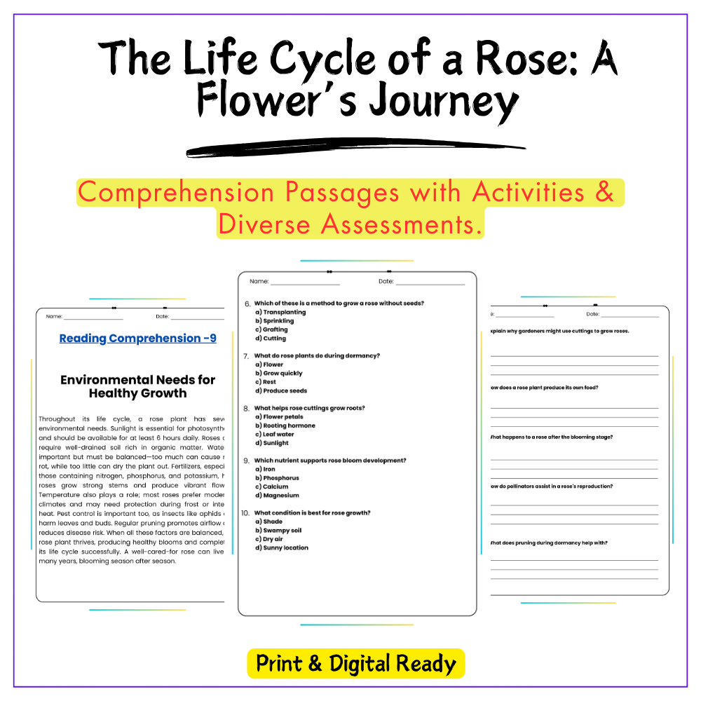 • Comprehension passages – Clear explanations of rose development