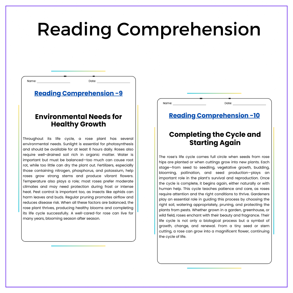• Comprehension passages – Clear explanations of rose development