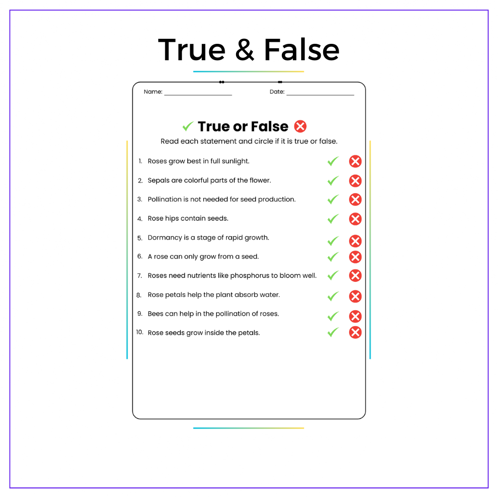 • True & False exercises – Clarify facts and myths about roses