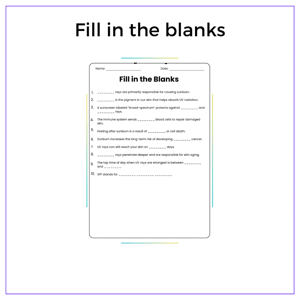 - Fill-in-the-blanks – Reinforce vocabulary about skin health