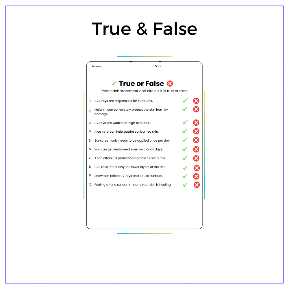 - Multiple-choice questions (MCQs) – Assess sun-related science facts