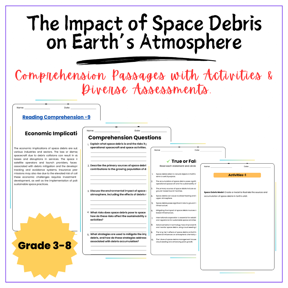 Help your students understand the growing issue of space pollution with The Impact of Space Debris on Earth’s Atmosphere worksheet! Designed for grades 3–8, this engaging resource explains how space debris enters Earth’s atmosphere, the dangers it poses, and the science behind tracking and managing it.