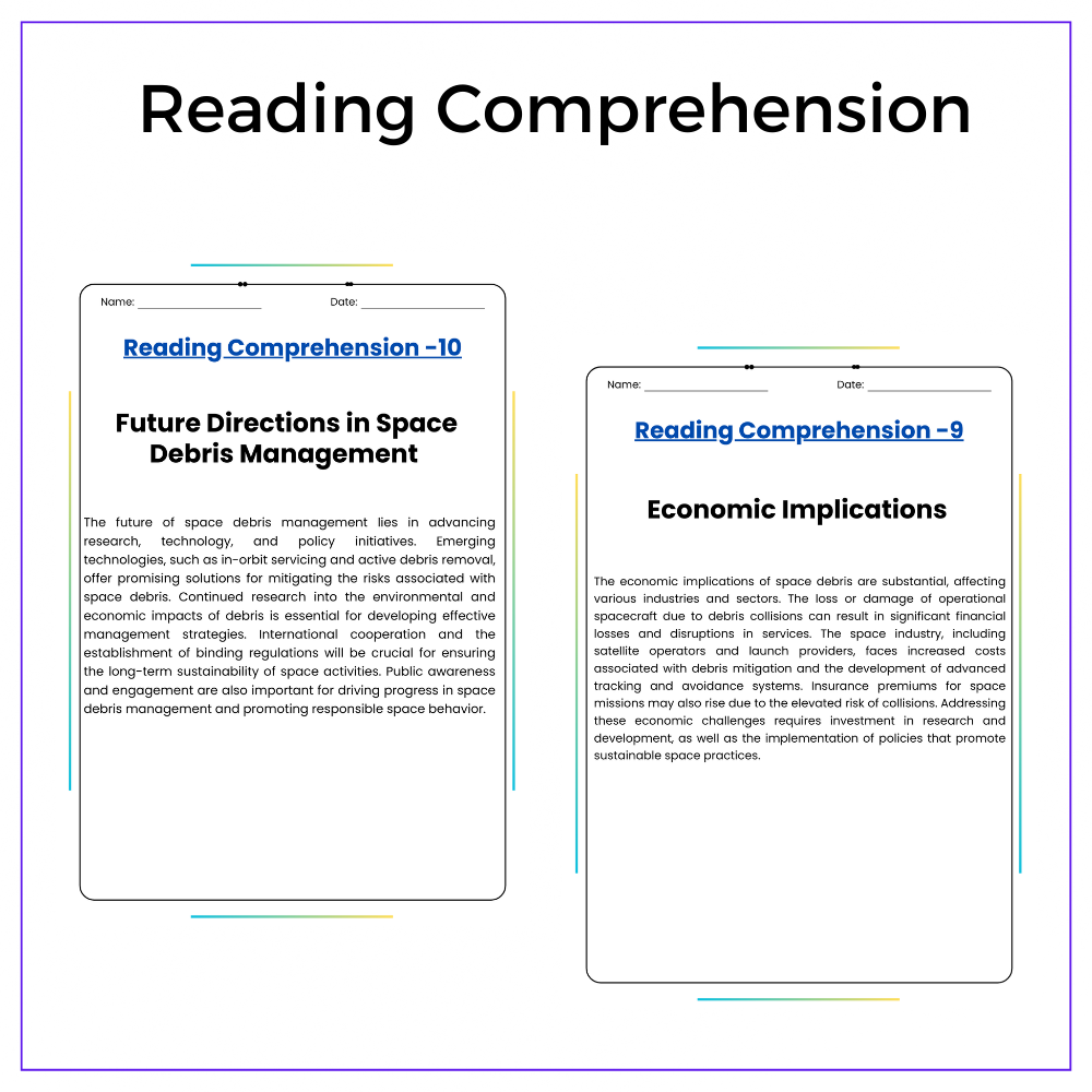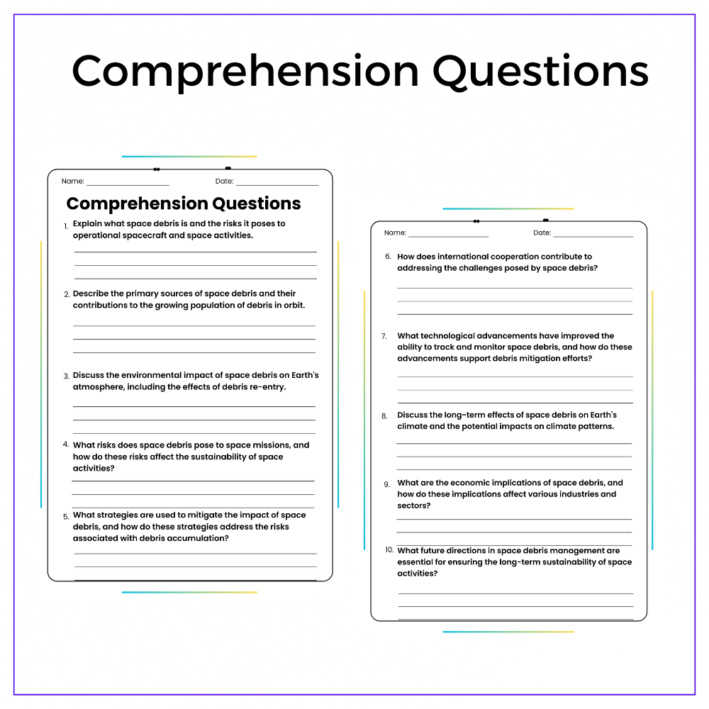 • Comprehension passages – Explore how and why space debris falls back to Earth
