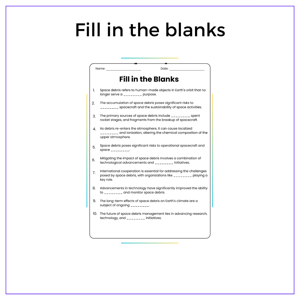 This interactive worksheet is great for individual use, collaborative discussions, enrichment, or test review. Students will dive into the science of reentry and atmospheric drag through comprehension passages, fill-in-the-blanks, MCQs, true/false questions, and critical thinking activities. Exciting class projects encourage teamwork and creative problem-solving.