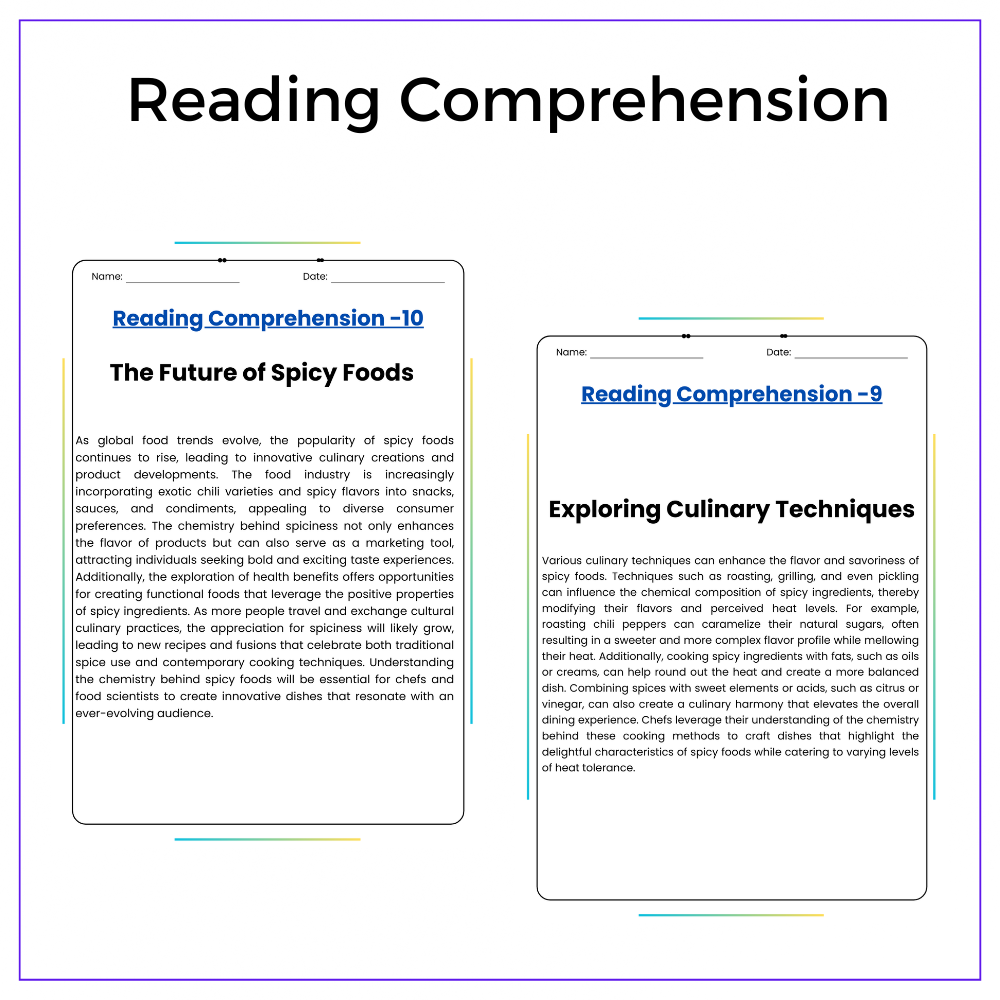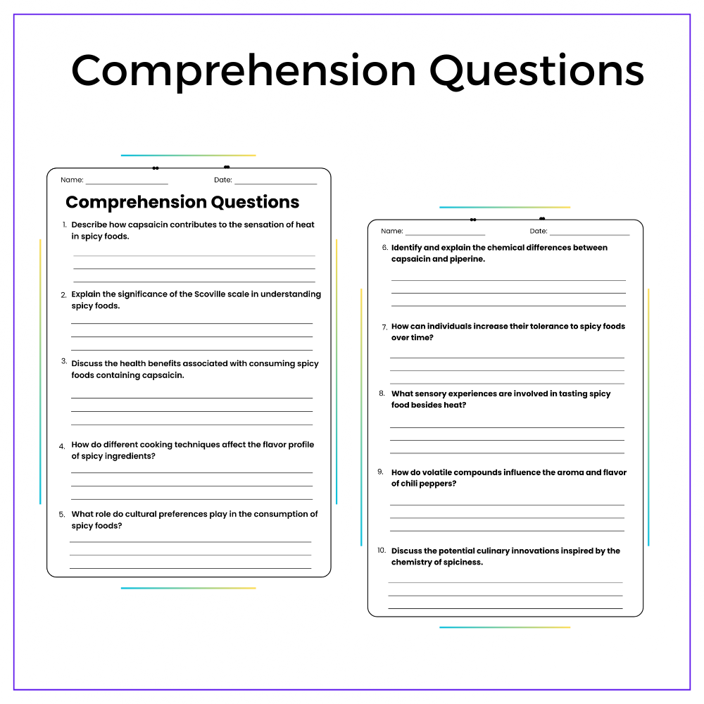 • Comprehension passages – Explain the chemistry of spicy sensations