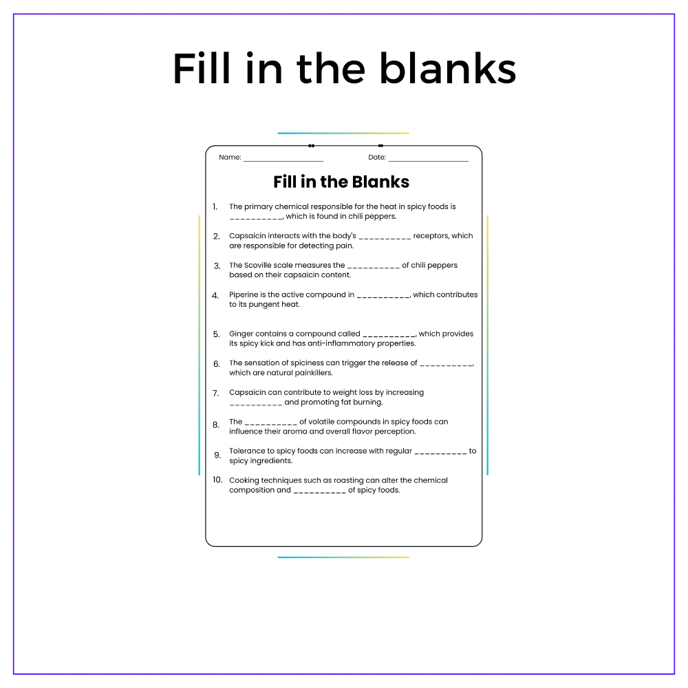 Discover why spicy foods burn with our worksheet for grades 4-8! Learn chemistry in this engaging lesson!