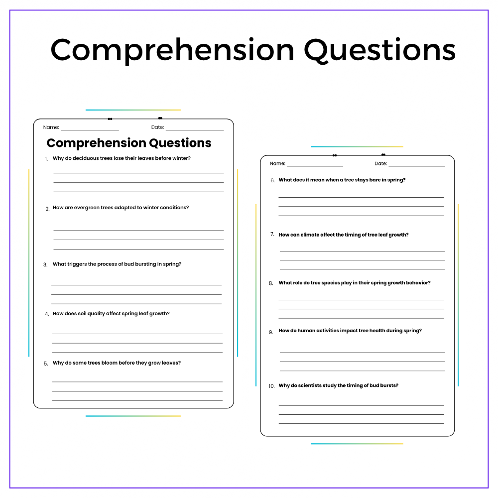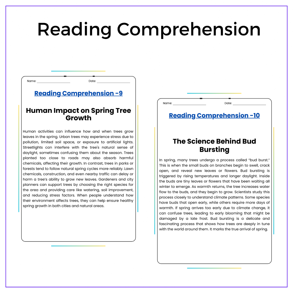- Comprehension passages – Clear explanations of seasonal leaf growth in trees