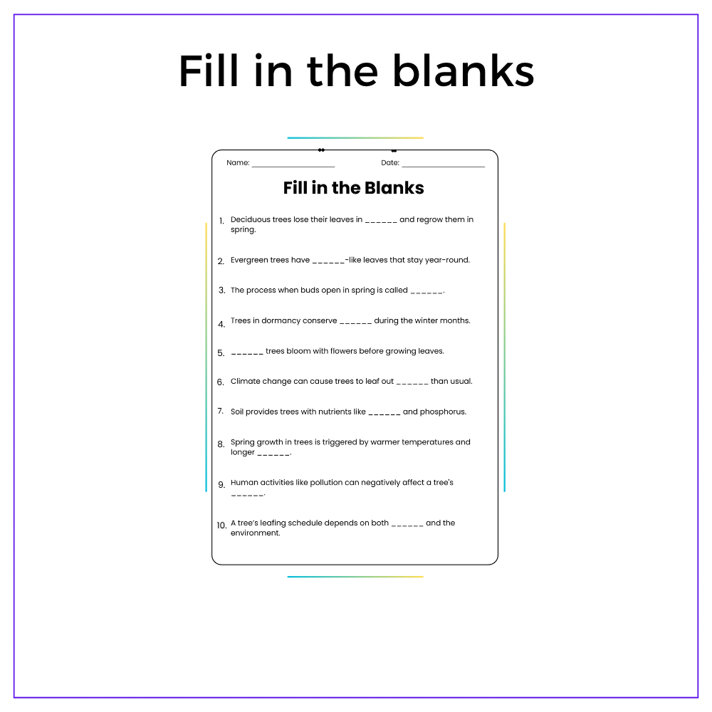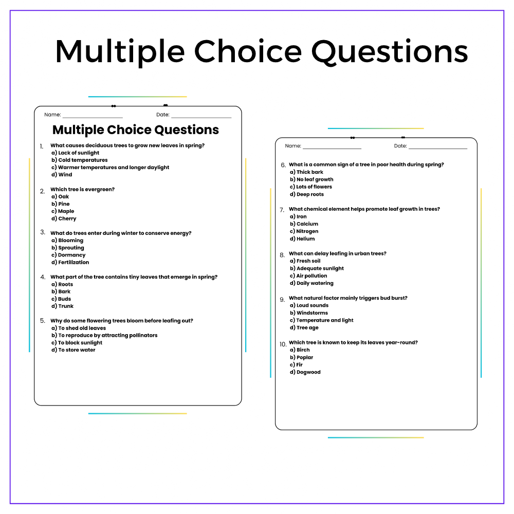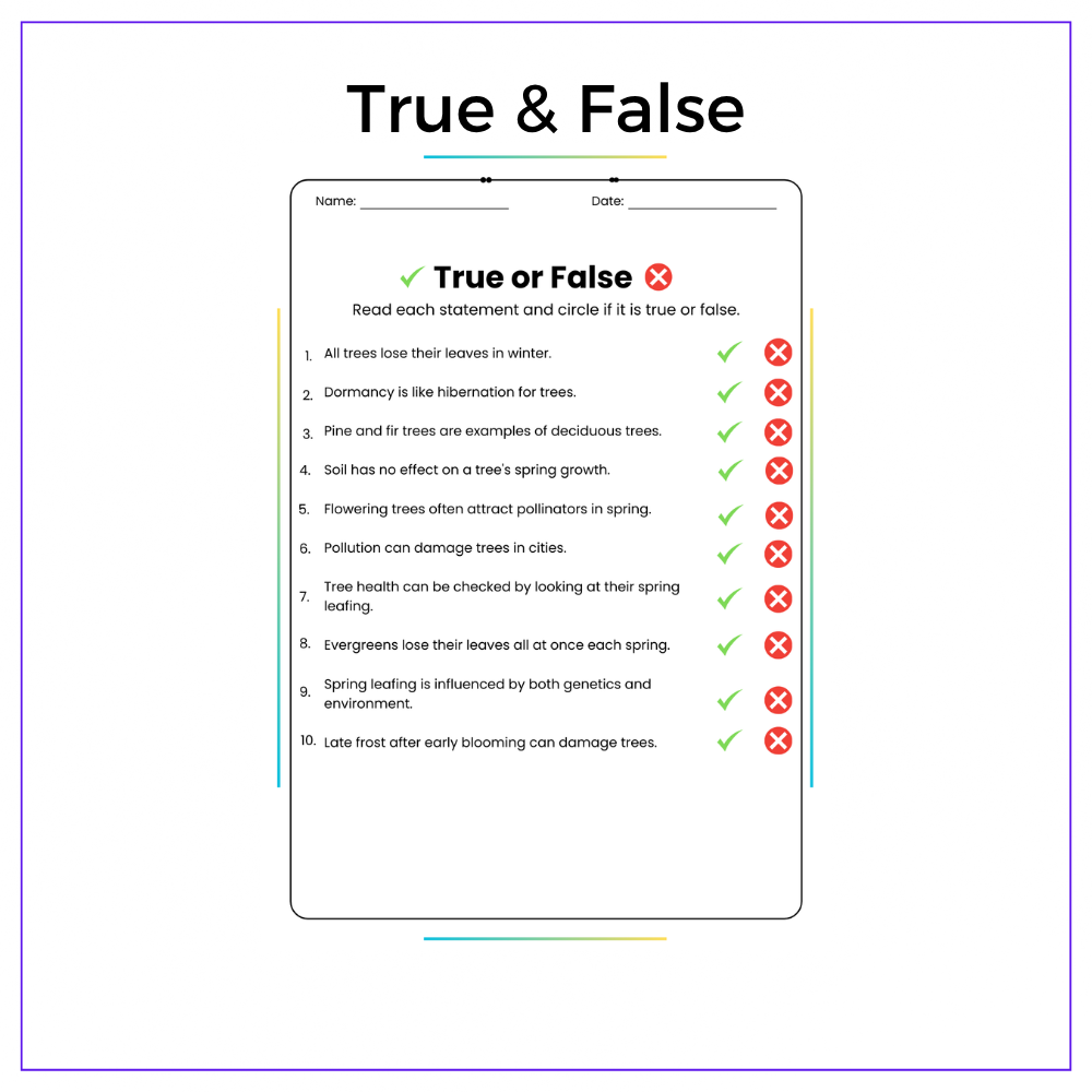 This worksheet helps your students understand the seasonal changes in trees with this interactive Springtime Changes worksheet! Designed for grades 4–8, this resource explains why some trees grow leaves in spring while others remain bare, making botanical concepts clear and interesting through engaging activities.