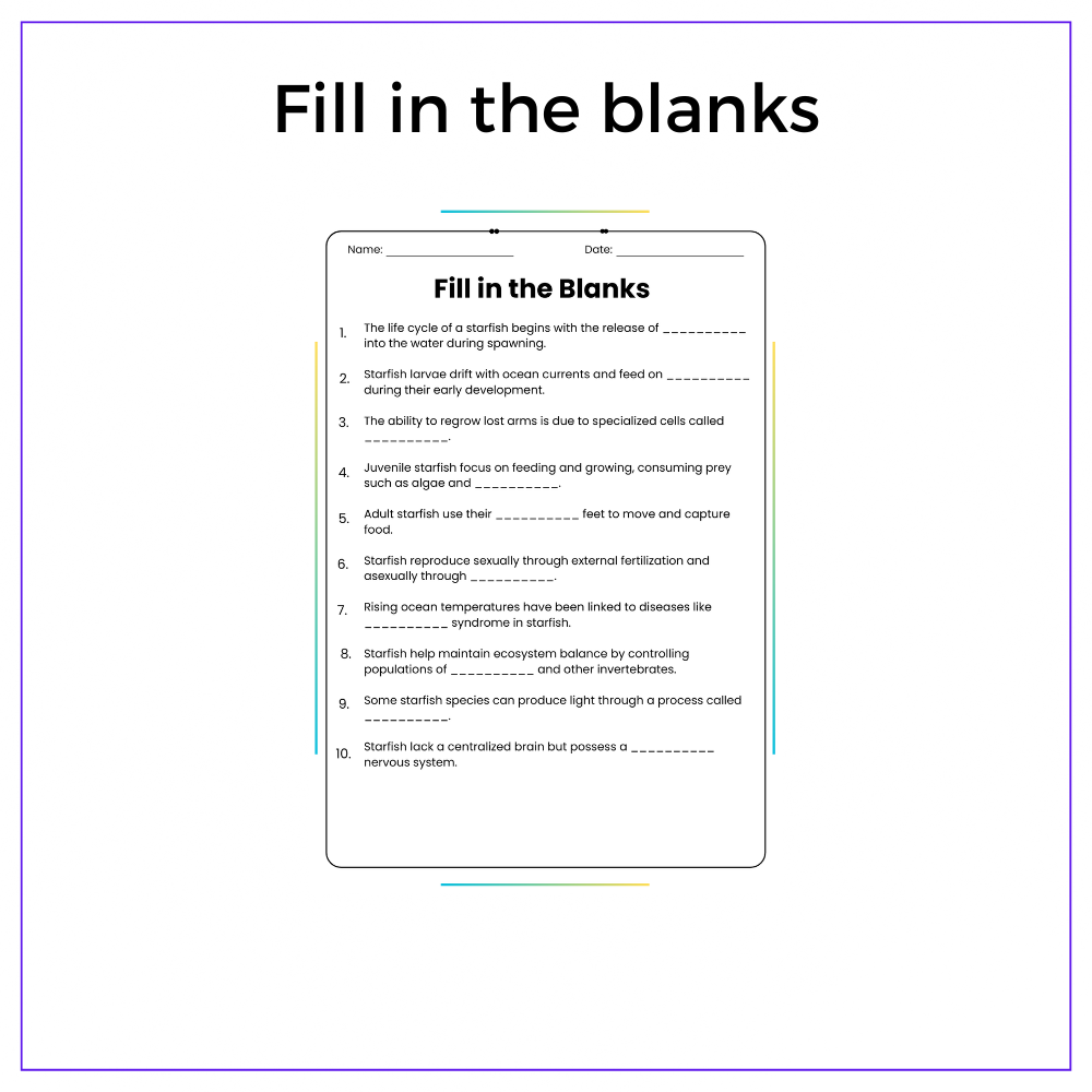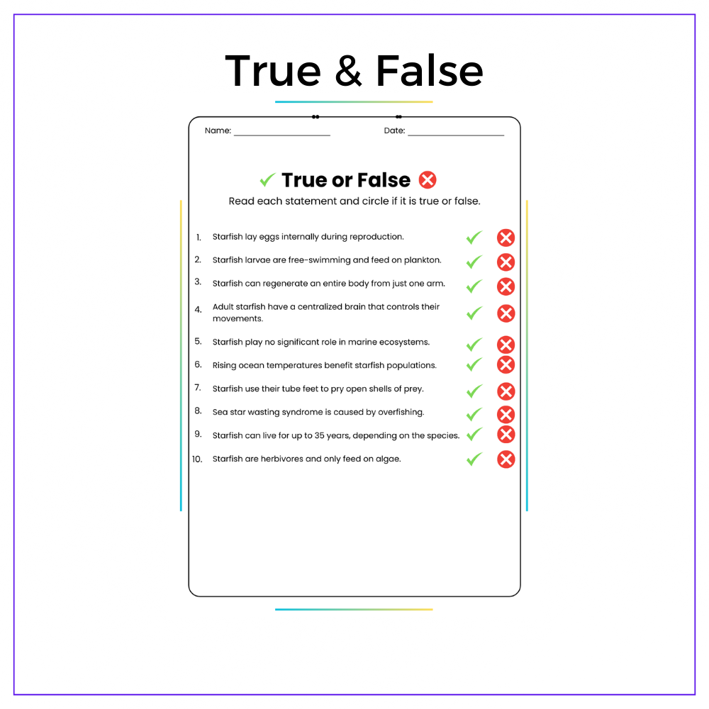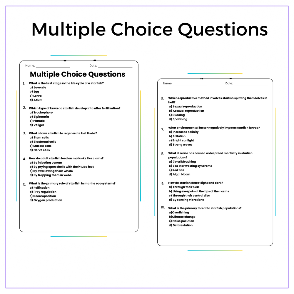 This versatile worksheet is perfect for individual assignments, group discussions, homeschooling, or extra practice, ensuring every student gains a clear understanding of starfish biology. With comprehension passages, fill-in-the-blanks, multiple-choice questions (MCQs), true/false exercises, and problem-solving challenges, students remain actively engaged. The included class activities inspire curiosity and support collaborative learning.