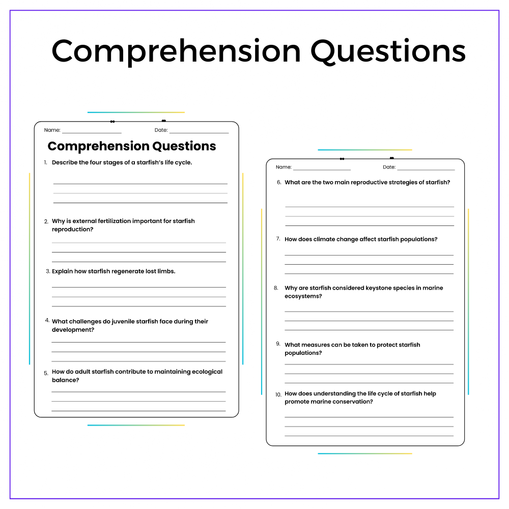 Introduce your students to the fascinating world of echinoderms with this interactive Life Cycle of a Starfish worksheet! Designed for grades 4–8, this resource explores the unique stages in a starfish’s life, from larval development to adulthood, highlighting its extraordinary ability to regenerate lost limbs.