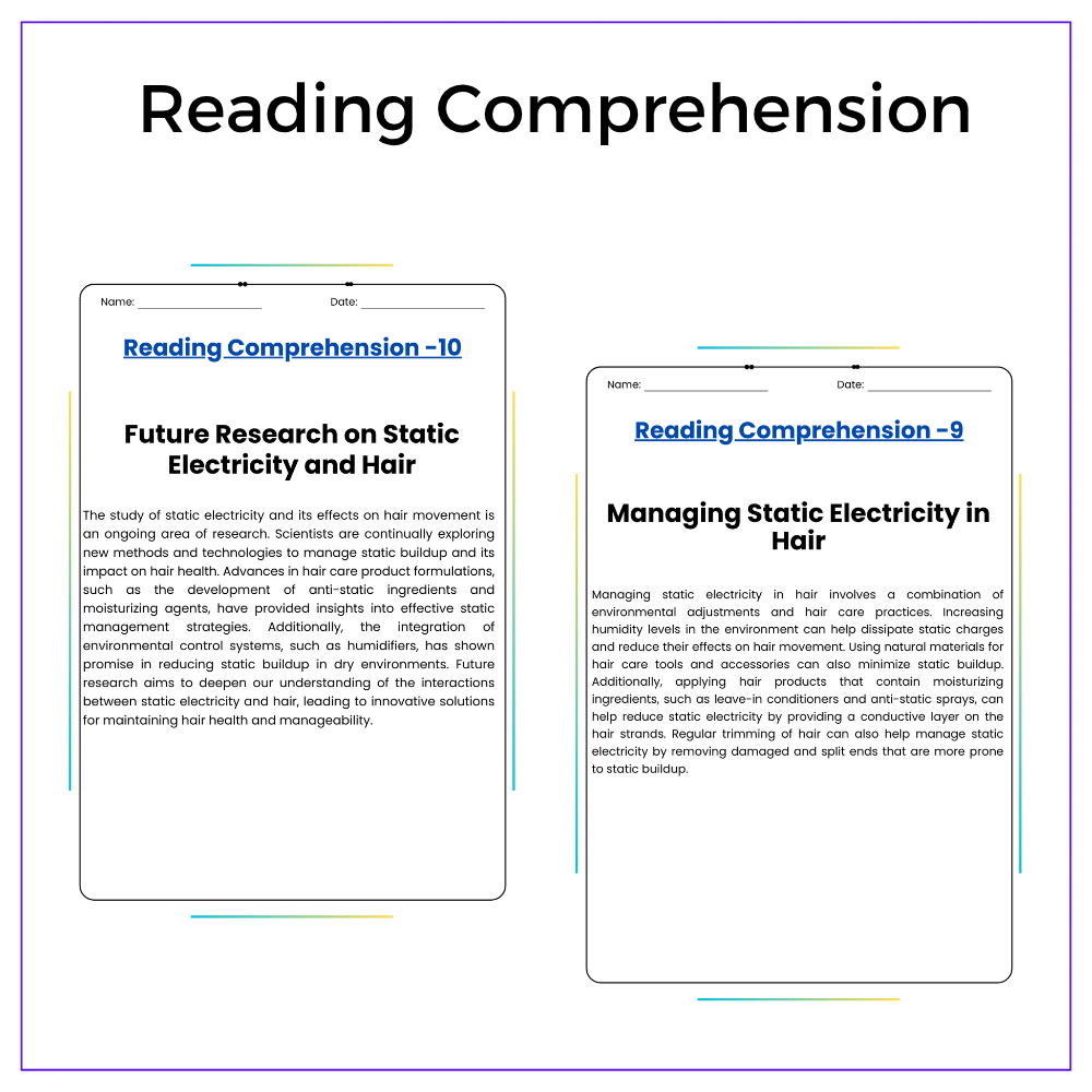 - Comprehension passages – Understand how static charges form and interact