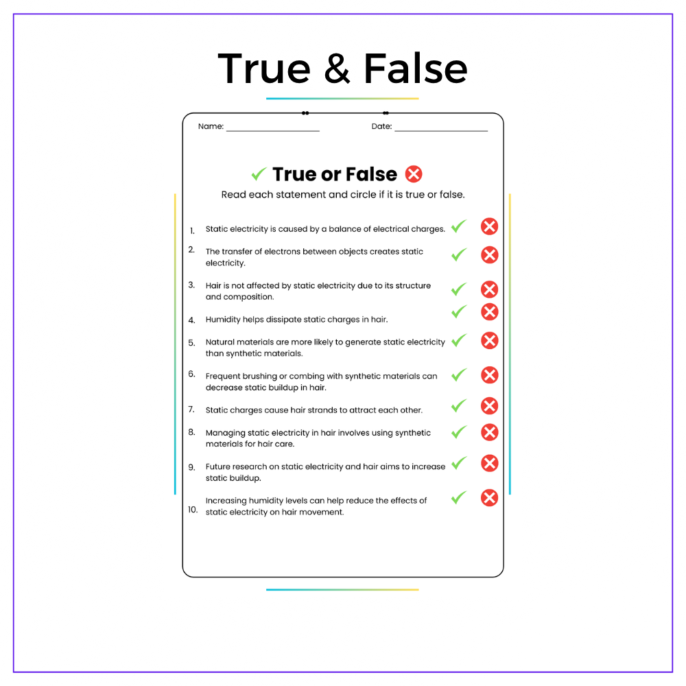 - True & False exercises – Address common static electricity myths