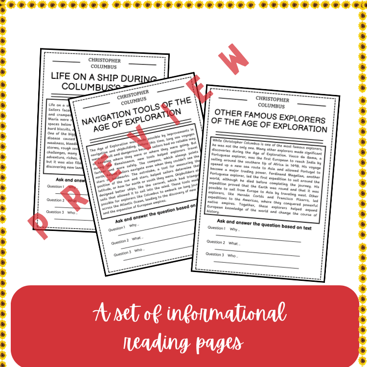 - Comprehension passages – Explore key facts about Columbus and other explorers