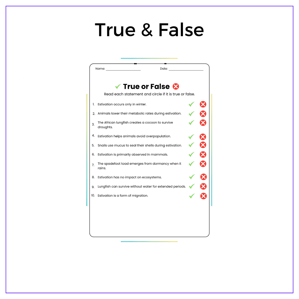 This worksheet helps your students understand unique animal behavior with this interactive Summer Hibernation (Estivation) worksheet! Designed for grades 4–8, this resource reveals how animals like snails, frogs, and desert creatures survive extreme heat by estivating instead of hibernating.