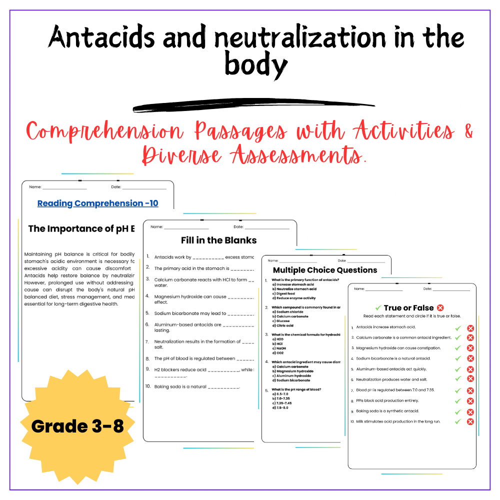 Learn how antacids work in the body with our worksheet for grades 4-8! Explore chemistry in this lesson!