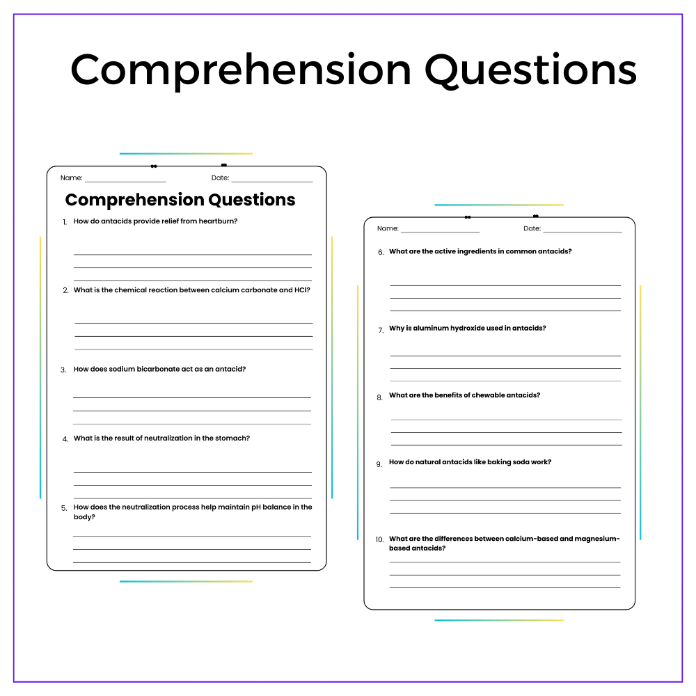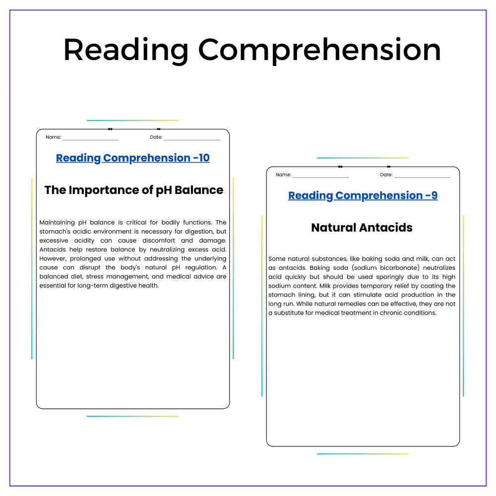 • Comprehension passages – Explain acid-base reactions in the stomach