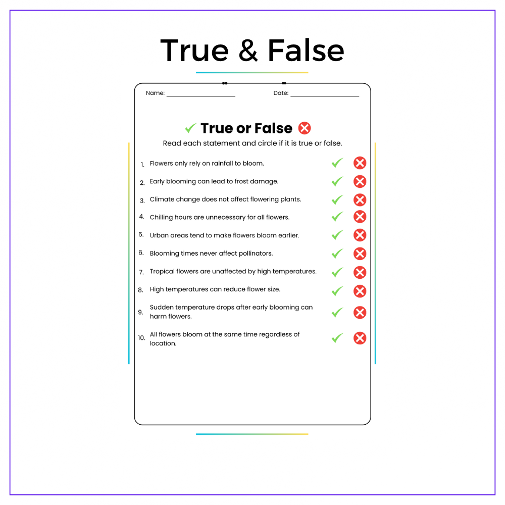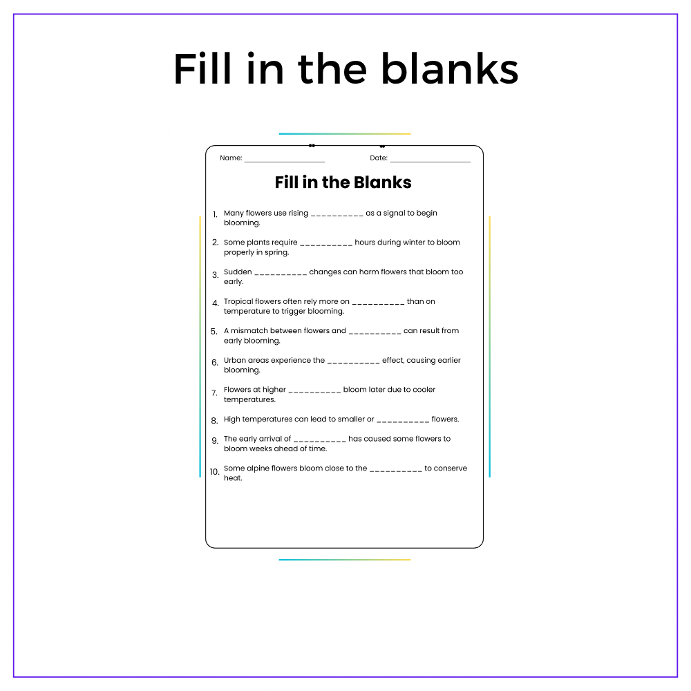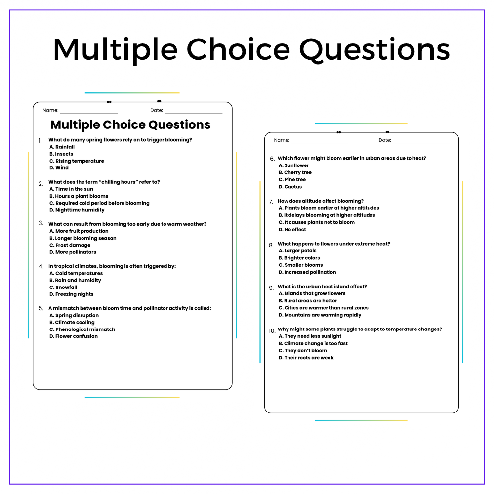 This worksheet helps your students explore how temperature influences blooming flowers with this interactive How Temperature Affects Blooming Flowers worksheet! Designed for grades 4–8, this resource covers the effects of heat and cold on flower growth, helping students understand plant responses to environmental conditions through clear explanations and engaging activities.