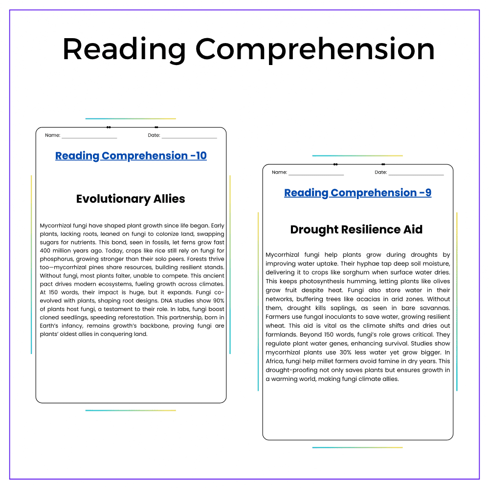 ✅ Comprehension passages – Explain the symbiotic relationship between fungi and plants, and their role in soil health