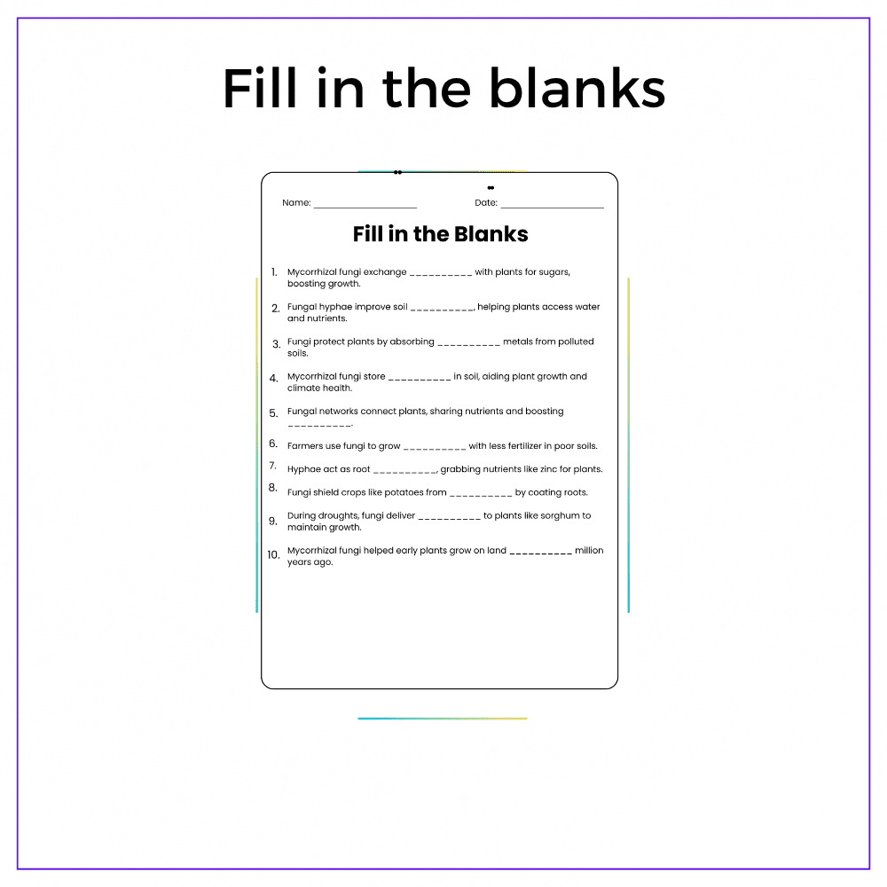 ✅ Comprehension questions – Encourage critical thinking about plant-fungi interactions and environmental importance