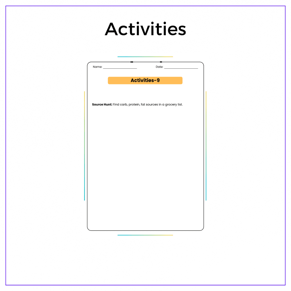 - Class activities – Build food pyramids or analyze real nutrition labels