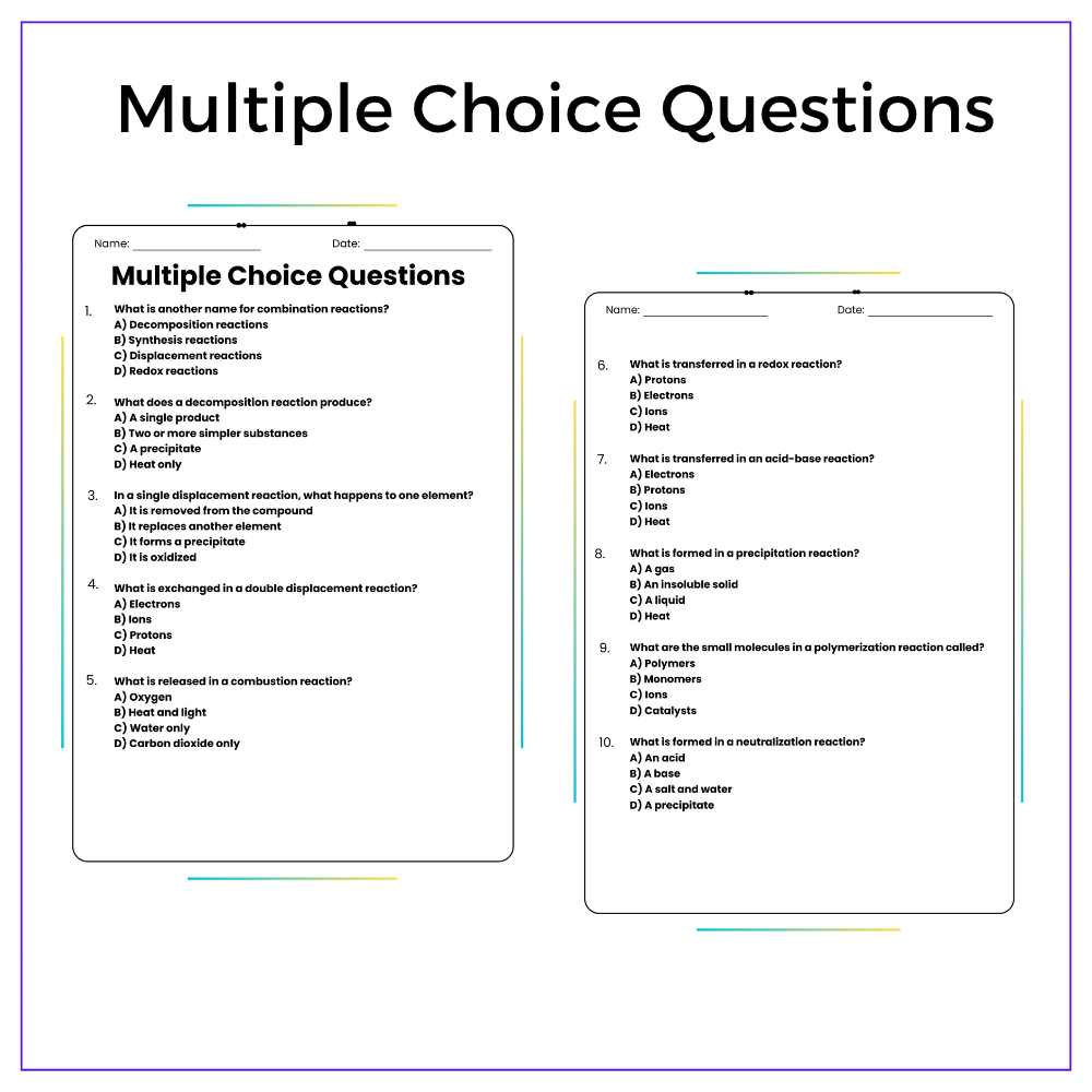 Perfect for classroom instruction, labs, group projects, or extra practice, this worksheet includes reading passages, fill-in-the-blanks, MCQs, true/false statements, and critical-thinking tasks. Students will discover how chemicals combine and break apart in everyday processes.