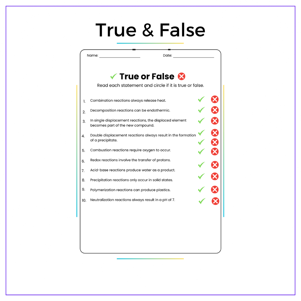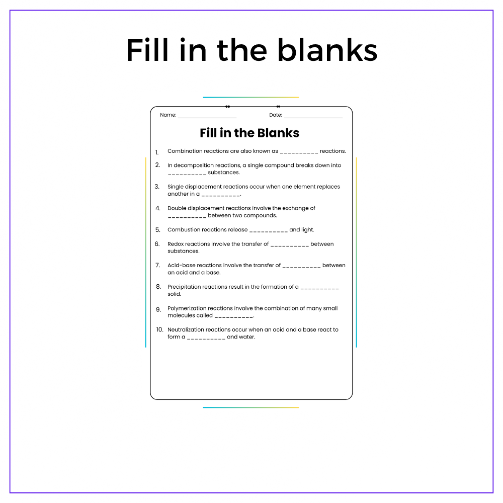 • Fill-in-the-blanks – Help students remember key terms and reaction types