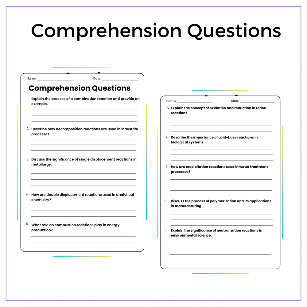 • Problem-solving challenge questions – Apply reaction concepts to real-life scenarios
