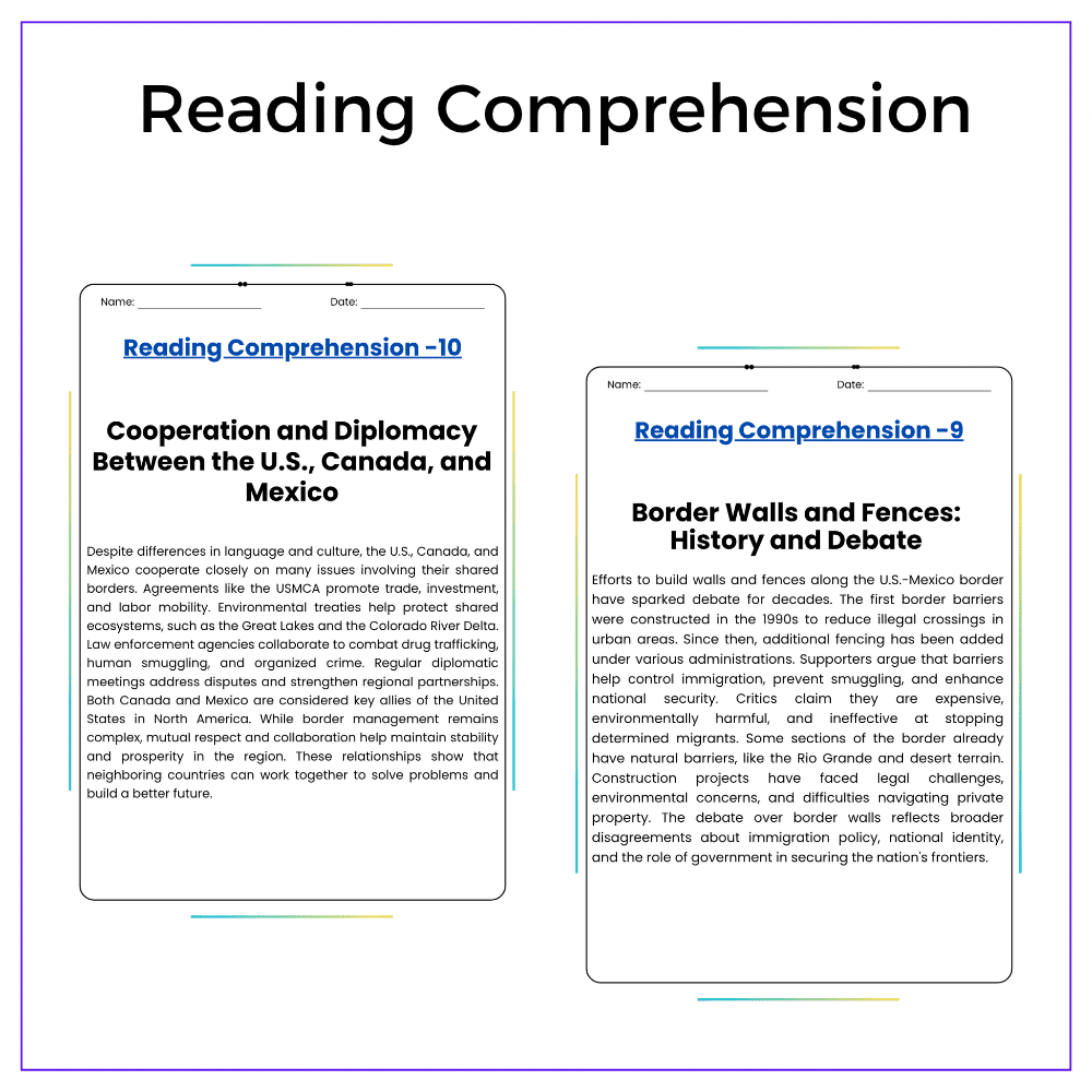 This versatile worksheet is perfect for individual assignments, group discussions, homeschooling, or extra practice, supporting student understanding of borders and their impact on culture, economy, and environment. It includes reading passages, fill-in-the-blanks, MCQs, and scenario-based questions.