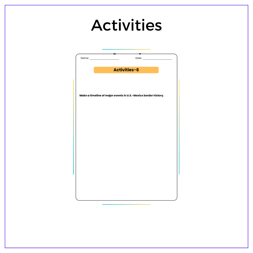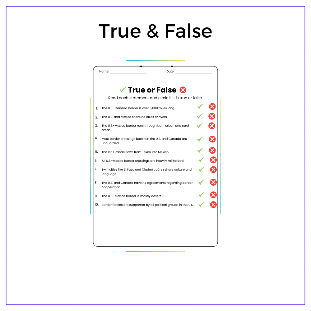 This worksheet helps your students explore geography and international relations with this interactive U.S. Borders: Canada and Mexico worksheet! Designed for grades 4–8, this resource examines the physical features, trade routes, and historical significance of America’s two land borders.