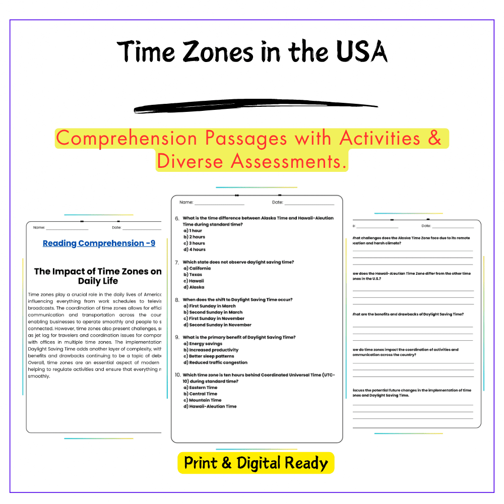 This versatile worksheet is perfect for individual assignments, group discussions, homeschooling, or extra practice, helping students grasp the logic behind time zones and how they affect travel, communication, and daily life. Engaging passages, fill-in-the-blanks, MCQs, and application challenges make this topic accessible and fun.