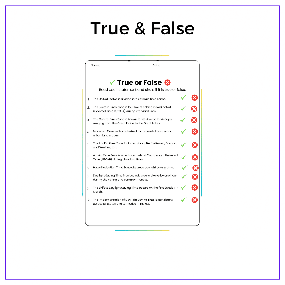 This worksheet helps your students understand national timekeeping with this interactive Time Zones in the USA worksheet! Designed for grades 4–8, this resource introduces the six major U.S. time zones and how Earth’s rotation and longitude lines impact time differences.