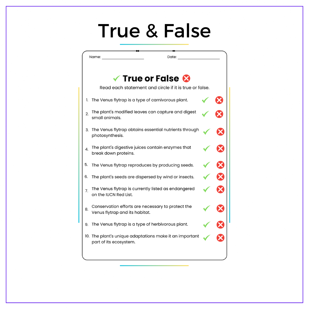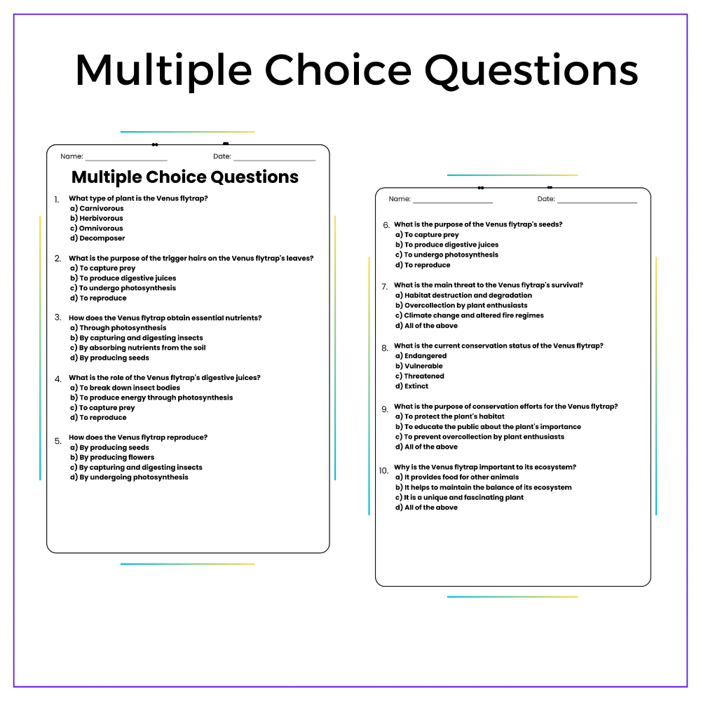 • Comprehension passages – Clear explanations of the Venus Flytrap’s life cycle