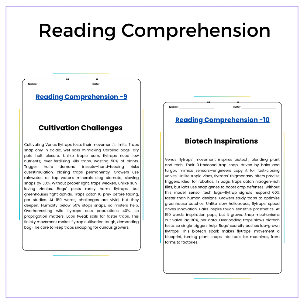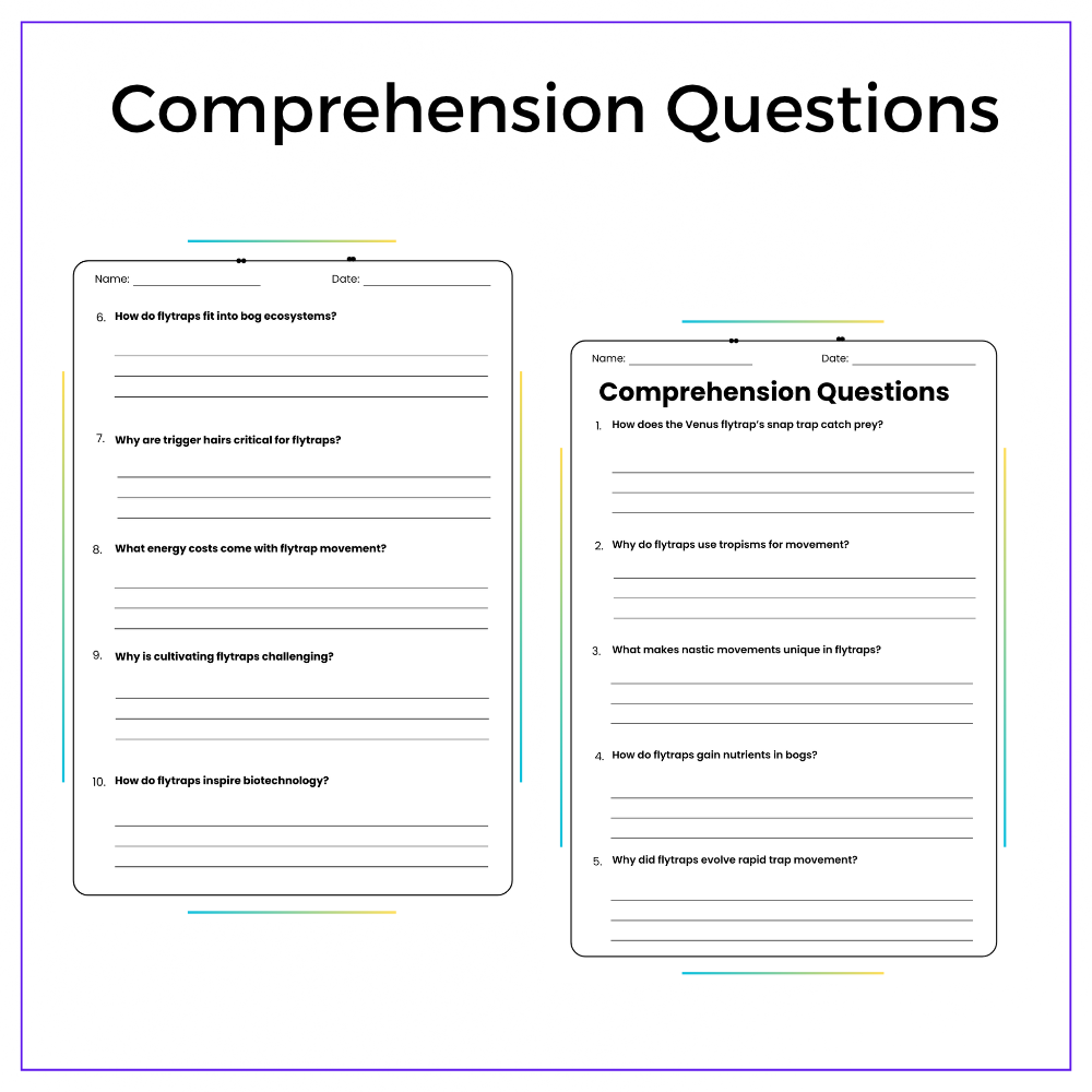 • Comprehension passages – Explain how and why the Venus flytrap reacts to touch