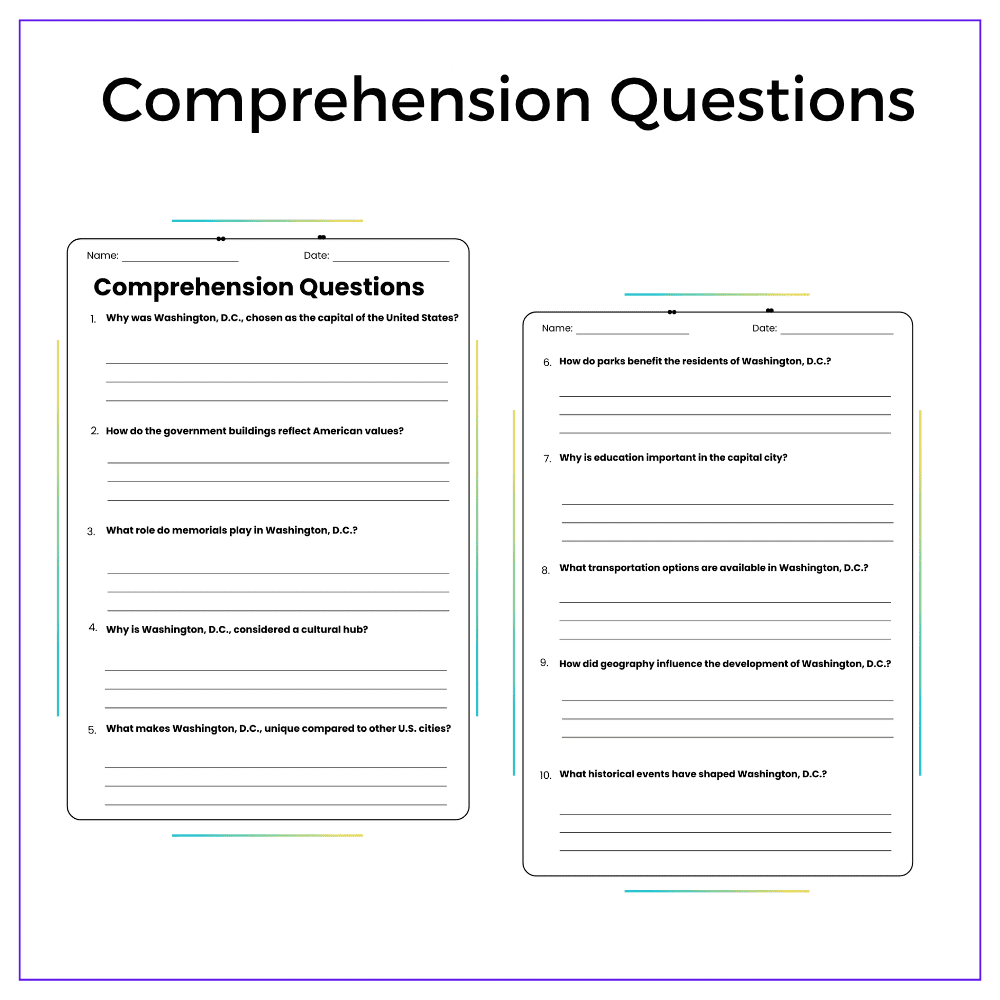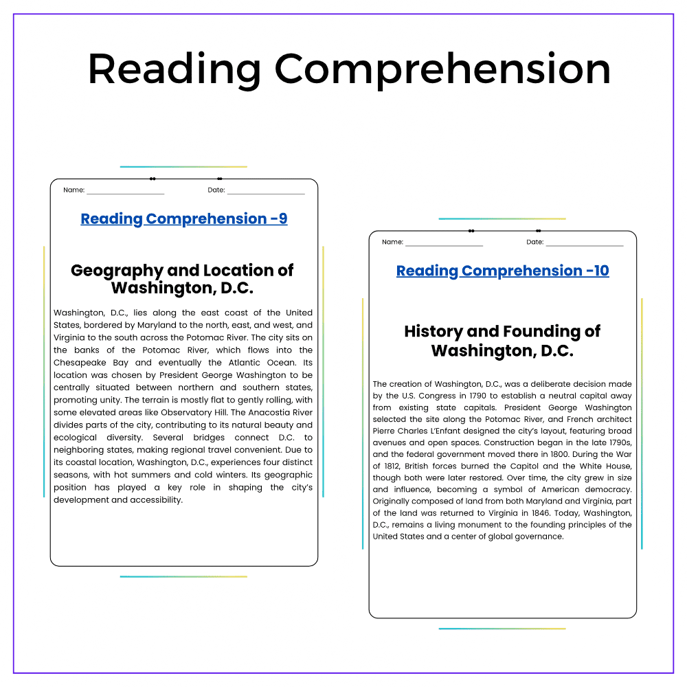 • Comprehension passages – Explore D.C.’s buildings, history, and role in the U.S.