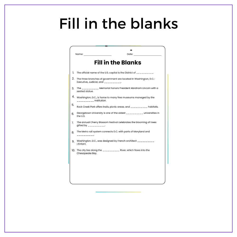 • Fill-in-the-blanks – Reinforce civic and geographic terms
