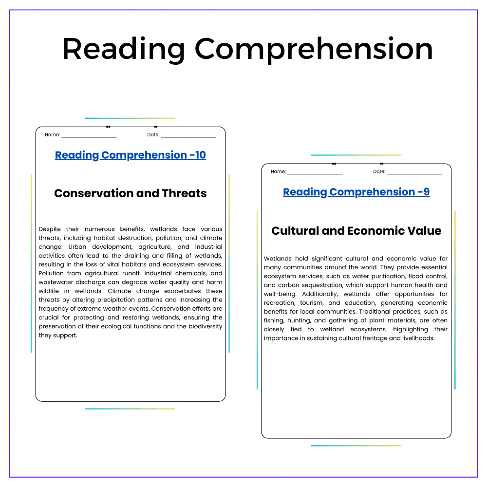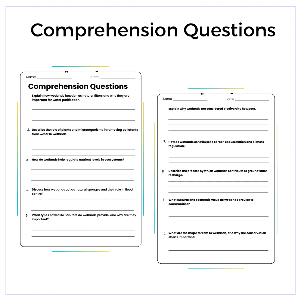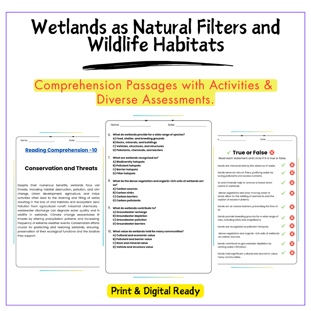 - Comprehension passages – Explore wetlands’ dual role in ecosystems