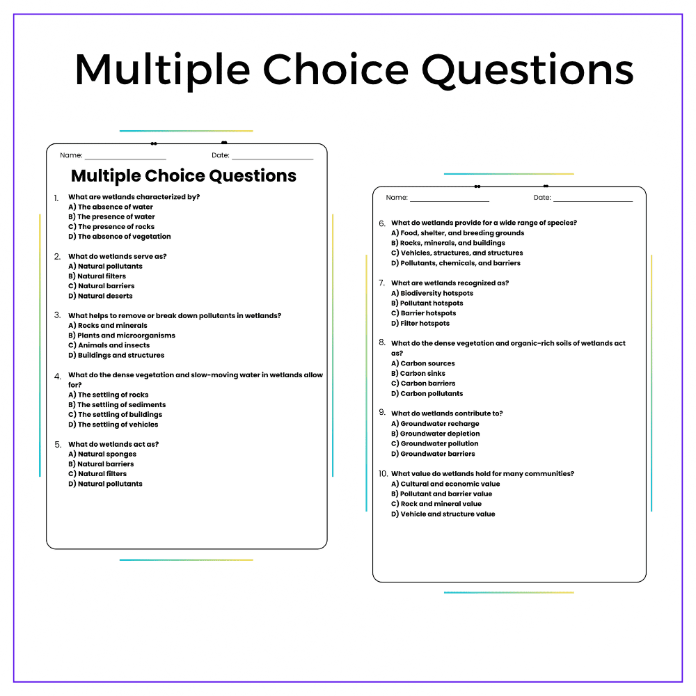 This versatile worksheet is perfect for individual assignments, group discussions, homeschooling, or extra practice, ensuring students grasp the environmental and ecological importance of wetlands. With comprehension passages, fill-in-the-blanks, multiple-choice questions (MCQs), true/false exercises, and problem-solving challenges, students stay engaged while reinforcing key ideas.