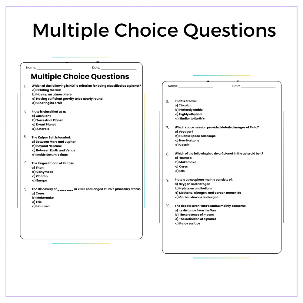 Ideal for class assignments, group discussions, or homeschooling, this worksheet combines detailed explanations with interactive learning. Students stay engaged through a mix of comprehension passages, MCQs, true/false statements, and critical-thinking activities. Hands-on class projects inspire deeper exploration into planetary classification.